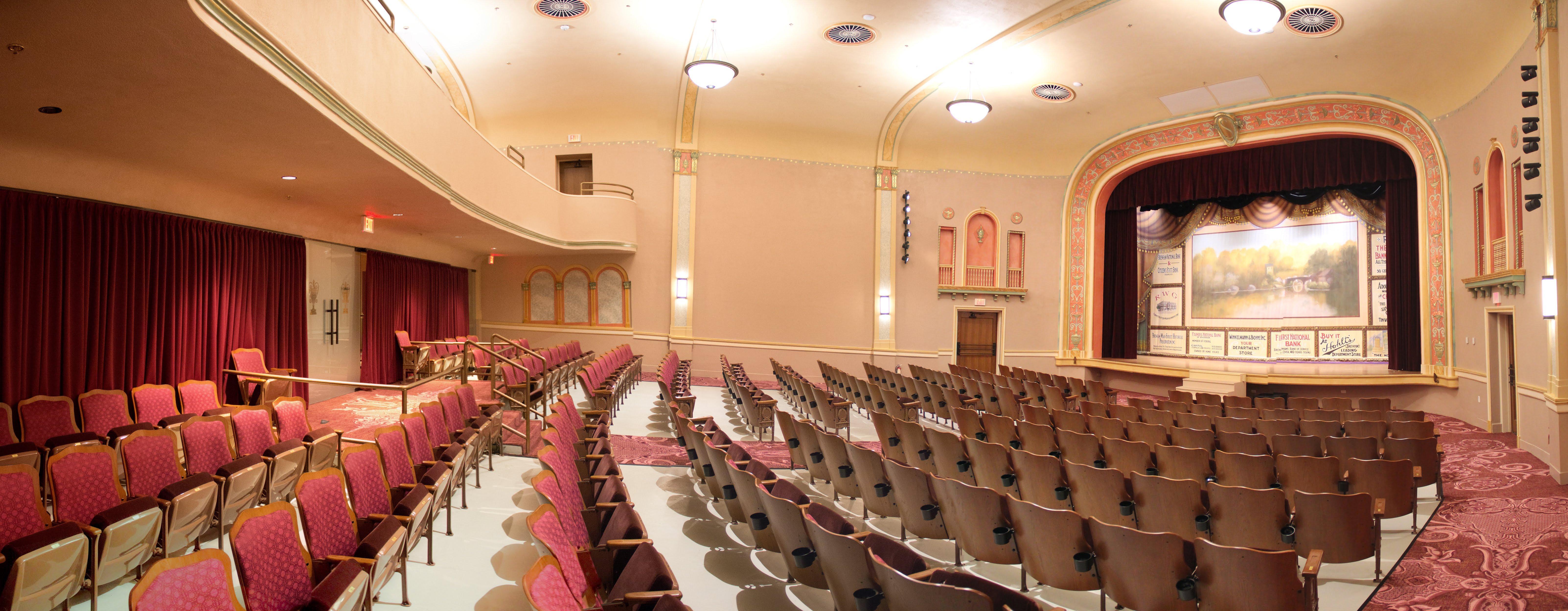 - Custom lighting capabilities - Vintage 1925 Vaudeville stage - 200 chairs on main floor, all with armrests, cupholders, and ample legroom. - 121 chairs in the balcony with armrests and cupholders. Great overhead view of the theatre stage.