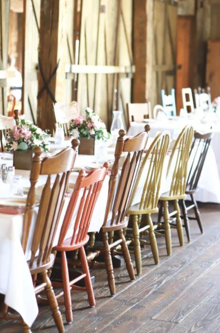Dine and dance the night away under the stars surrounded by our quaint apple orchard adorned with market lights. Abundant sky day view and then starry nights surround the beautiful orchard above. Entertain your guests with lawn games, stunning views of our historic Kuhn Family Farm, a bonfire to roast s’mores, and even carriage/wagon rides around our beautiful property! Use our antique tables & chairs and choose gorgeous one-of-a-kind centerpieces from our décor catalogue or your own unique décor to create your perfect, rustic wedding that your guests are sure to remember!