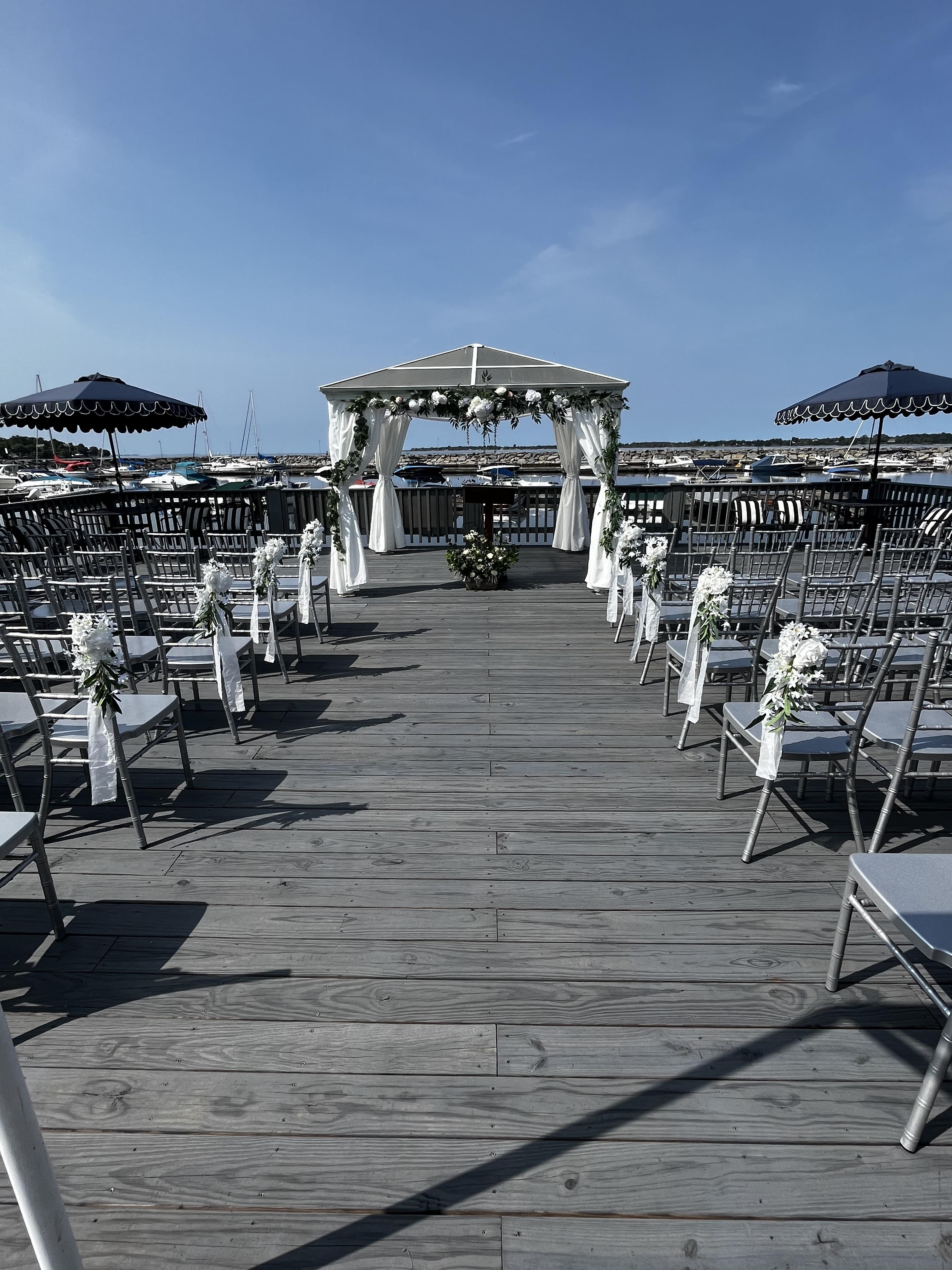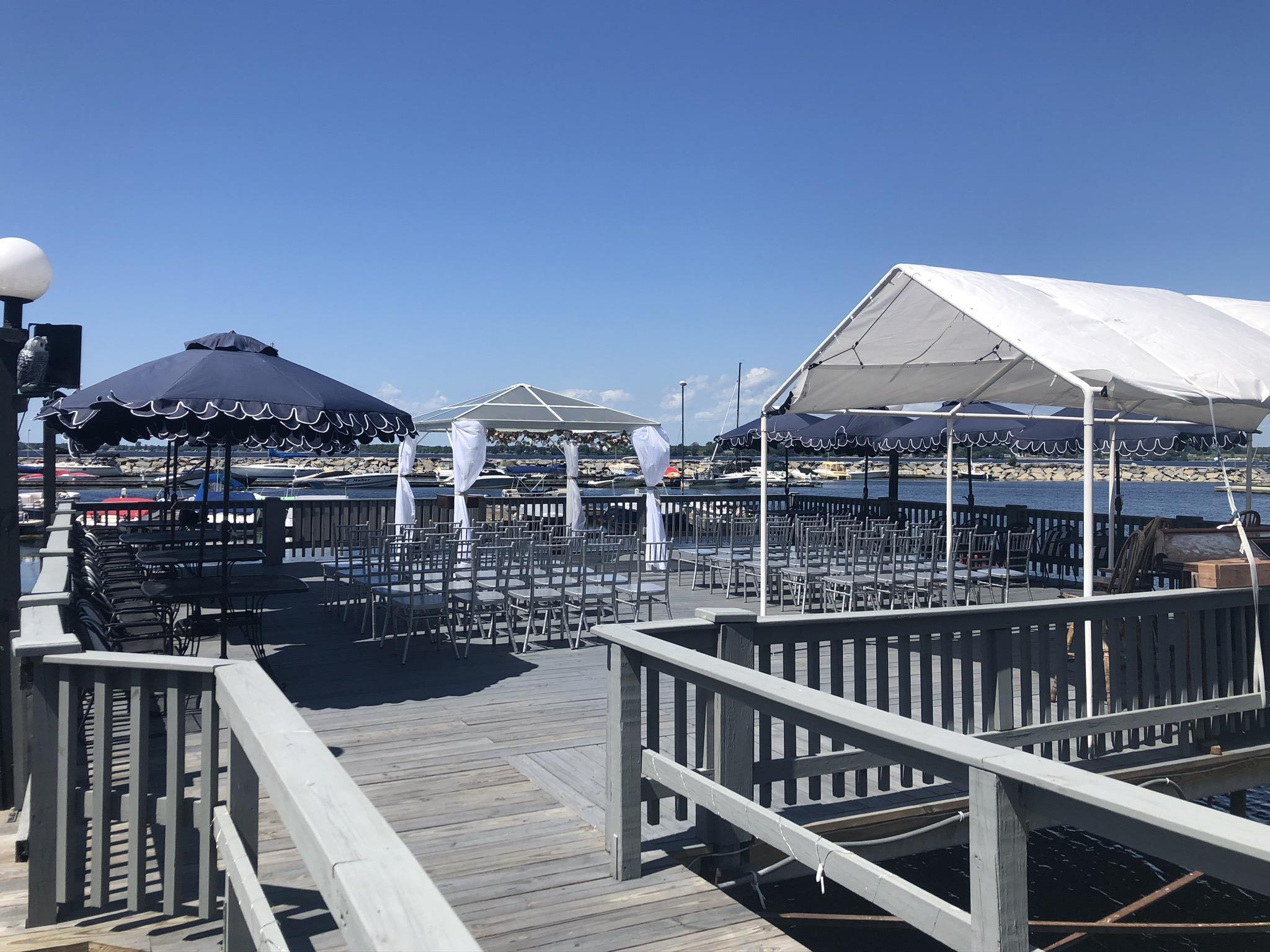 Our main dining room is connected to our historic War of 1812 bar, which is constructed of 2’ thick stone walls, adorned with crystal chandeliers hanging in our open two-story bar with a working fireplace. This area seats an additional 50 people. Our outside patio features a 1600 sq. ft. dock with an outside bar and boardwalk. Have the wedding of your dreams at The Barrack's Inn!