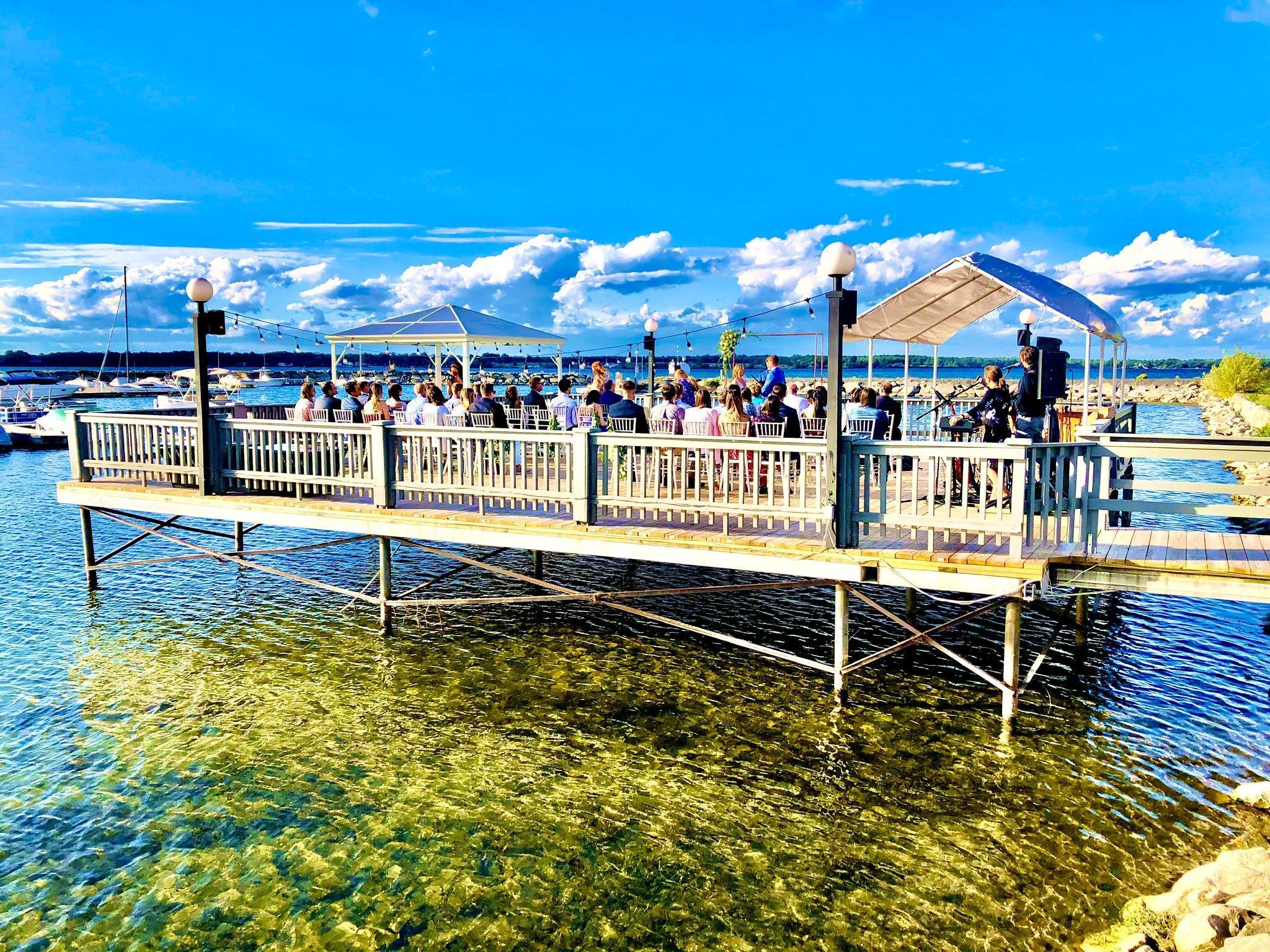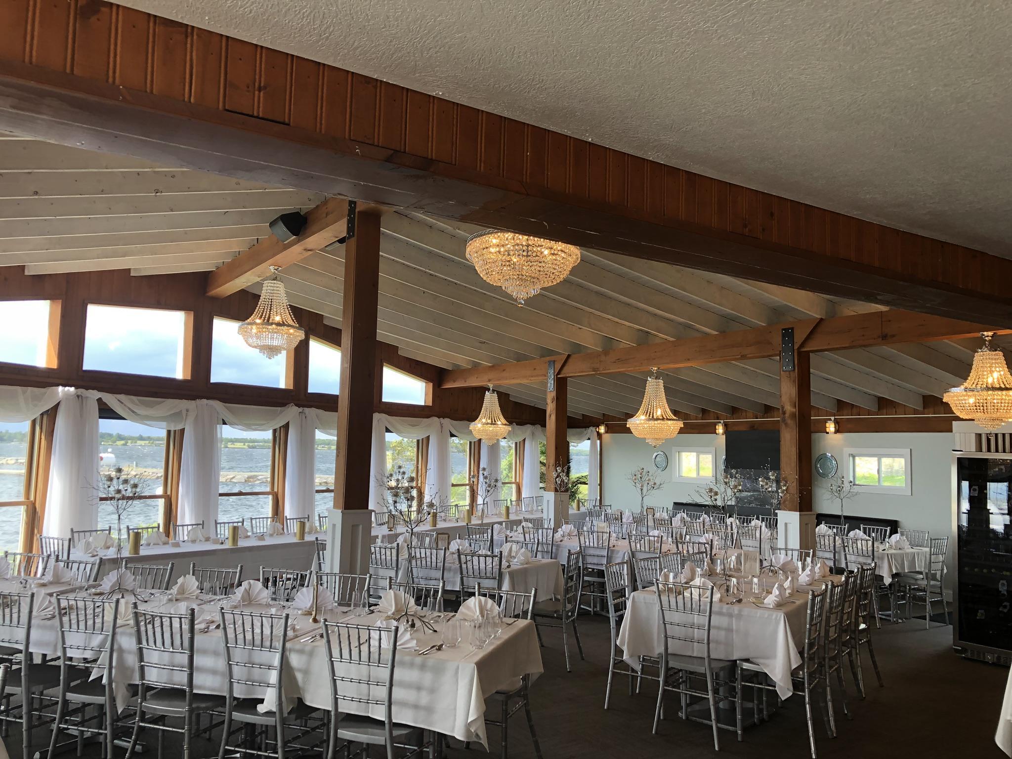 We are an upscale wedding venue with both inside and outside seating located directly on picturesque Lake Ontario with our 1600 square foot dock over it. The Barrack’s Inn stone center building was the first building built in the War of 1812 to be the bakery. It is on the historic national register. Inside we can seat 150 people, while outside we can seat an additional 100 people. We are happy to make any and all food requests and we feature all-inclusive packages which include: flowers, table decorating, music, photography, cake and desserts, ceremony, favors and all food and beverages.