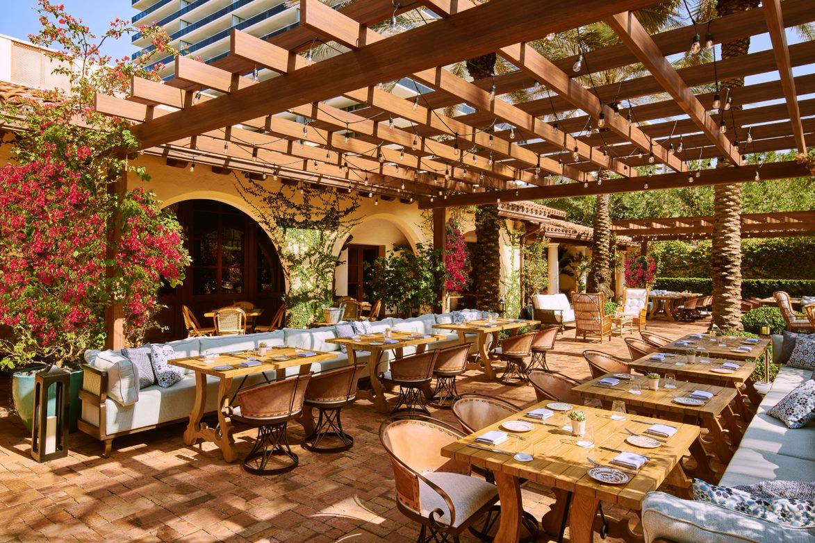 Surrounded by lush palm trees and draped in vibrant bougainvillea, the Courtyard Terrace provides a romantic and picturesque outdoor setting for wedding events. This charming terrace offers couples the opportunity to host al fresco dining or cocktail receptions in a serene garden environment filled with tropical beauty. The natural ambiance, combined with elegant details like a pergola, creates a memorable backdrop for celebrating love under the open sky.