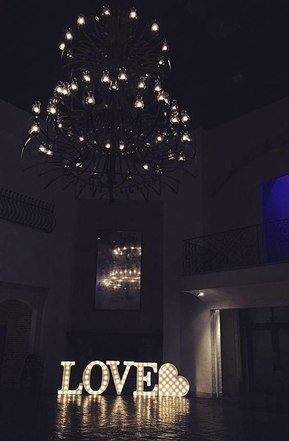 Imagine dancing the night away under our largest Chandelier as the light twinkles off the black stone floor.