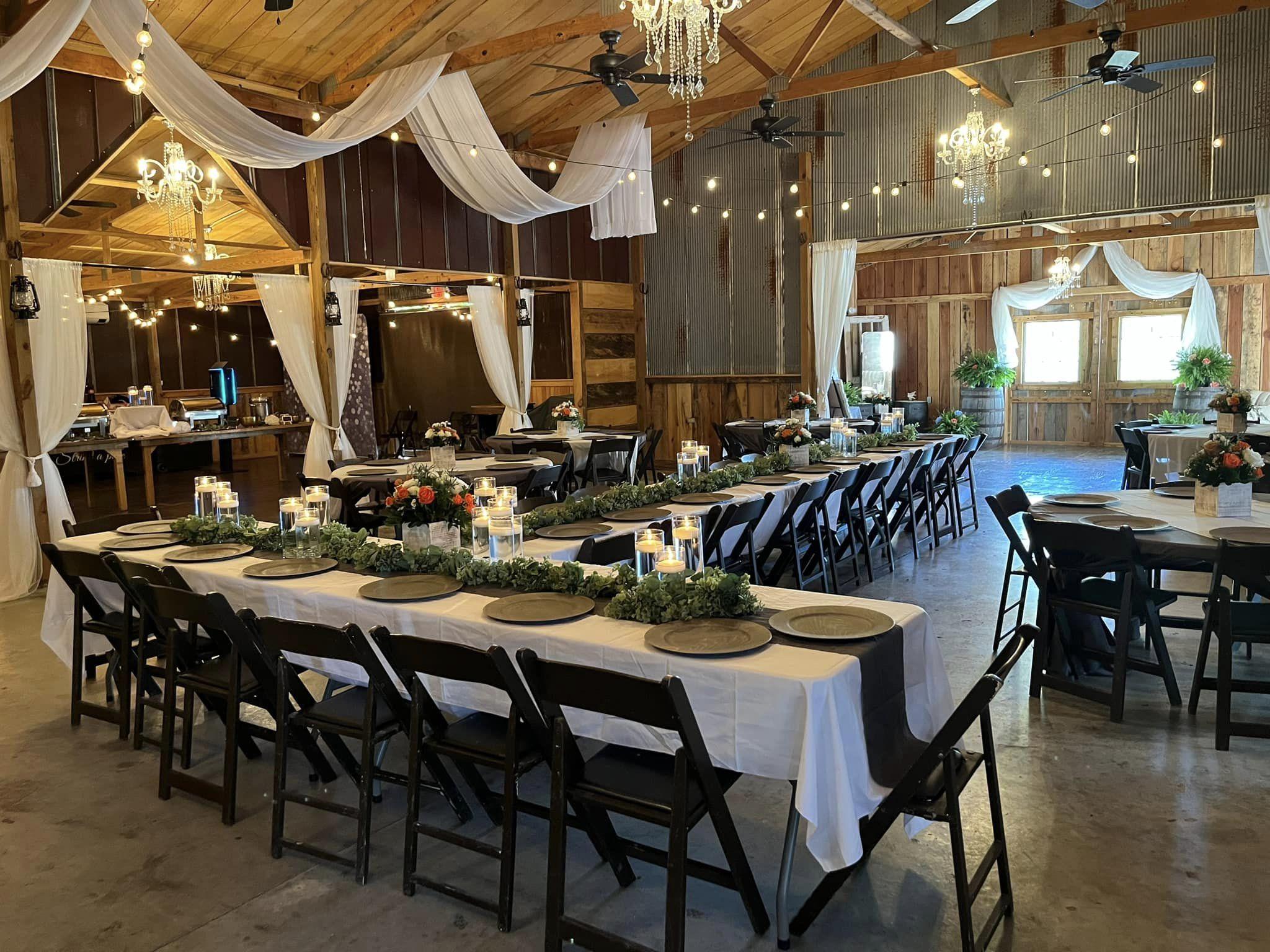 Whether you're seeking an elegant high-end affair or the rustic charm of the country for your wedding day, The Bella Barn of West Tennessee is here to make it happen. We have everything you need with an open barn area that can accommodate up to 200 guests, bridal and groom suites, and plenty of outdoor space! We have transformed this enchanting structure with modern amenities like lighting, air conditioning, his and her bathrooms, kitchen and aesthetic touches you are sure to fall in love with.