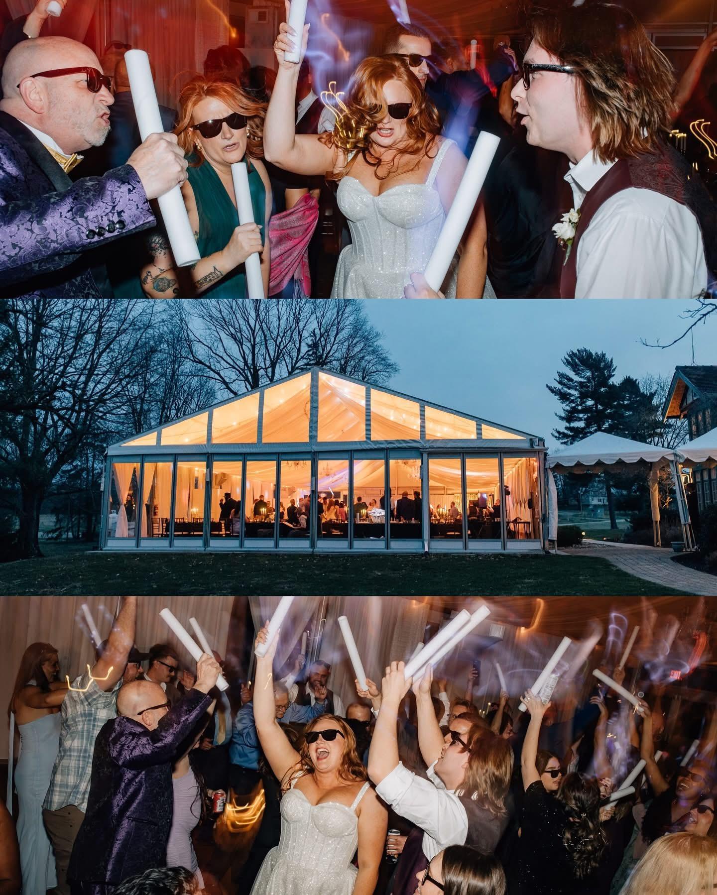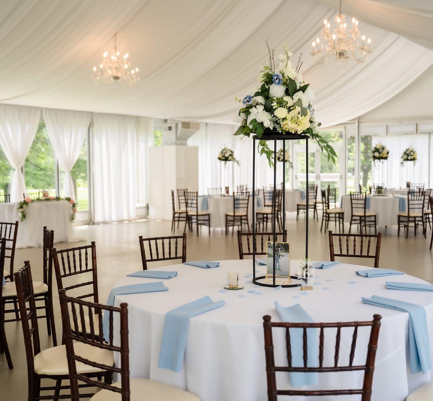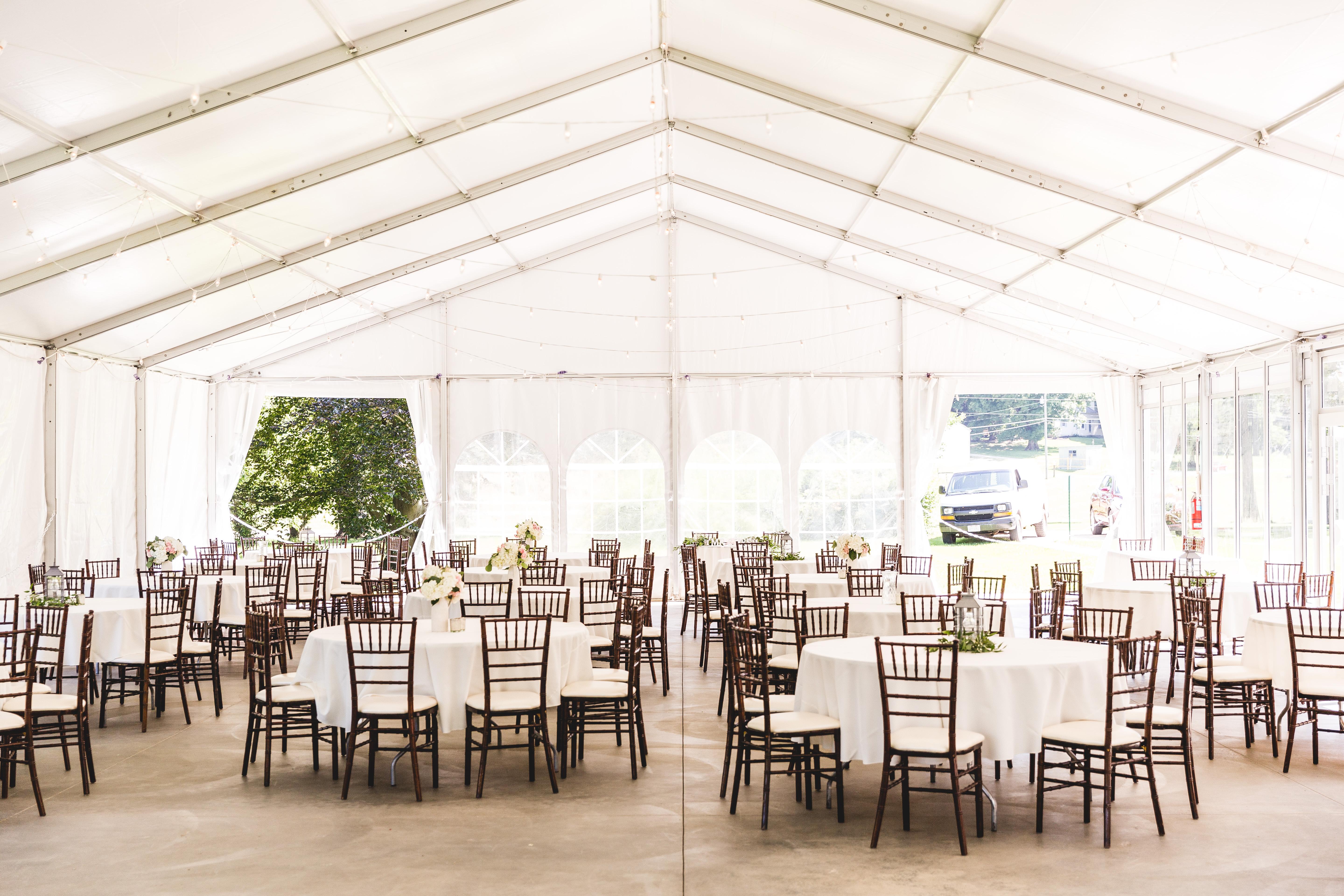 The pavilion was built just a few short years ago to offer an additional vibe to guests, as well as increased the possible guest counts from 100 to 230. This permanent glass structure (which includes AC/Heat) almost feels like a upscale & elegant green house - dawning draping, string lights and chandeliers. Including natural wood chivari chairs, this room is typically where couples will host their guests for dinner, speeches and dancing.
