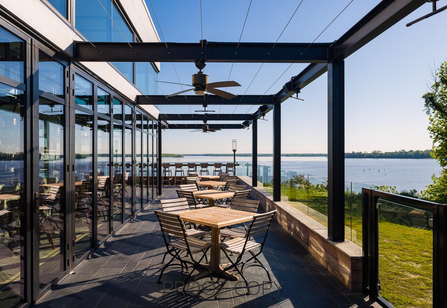 This space features a nearly 2,000 square foot tented patio, with sweeping riverfront views and seating options for ceremony and/or reception.