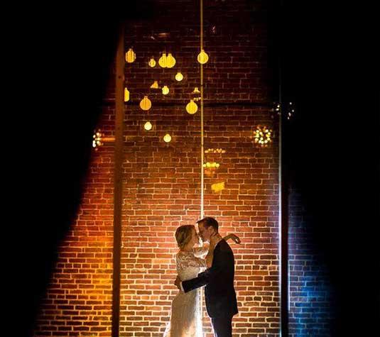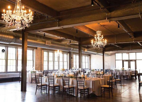 Celebrate your wedding night in style underneath custom chandeliers suspended from exposed industrial beams.