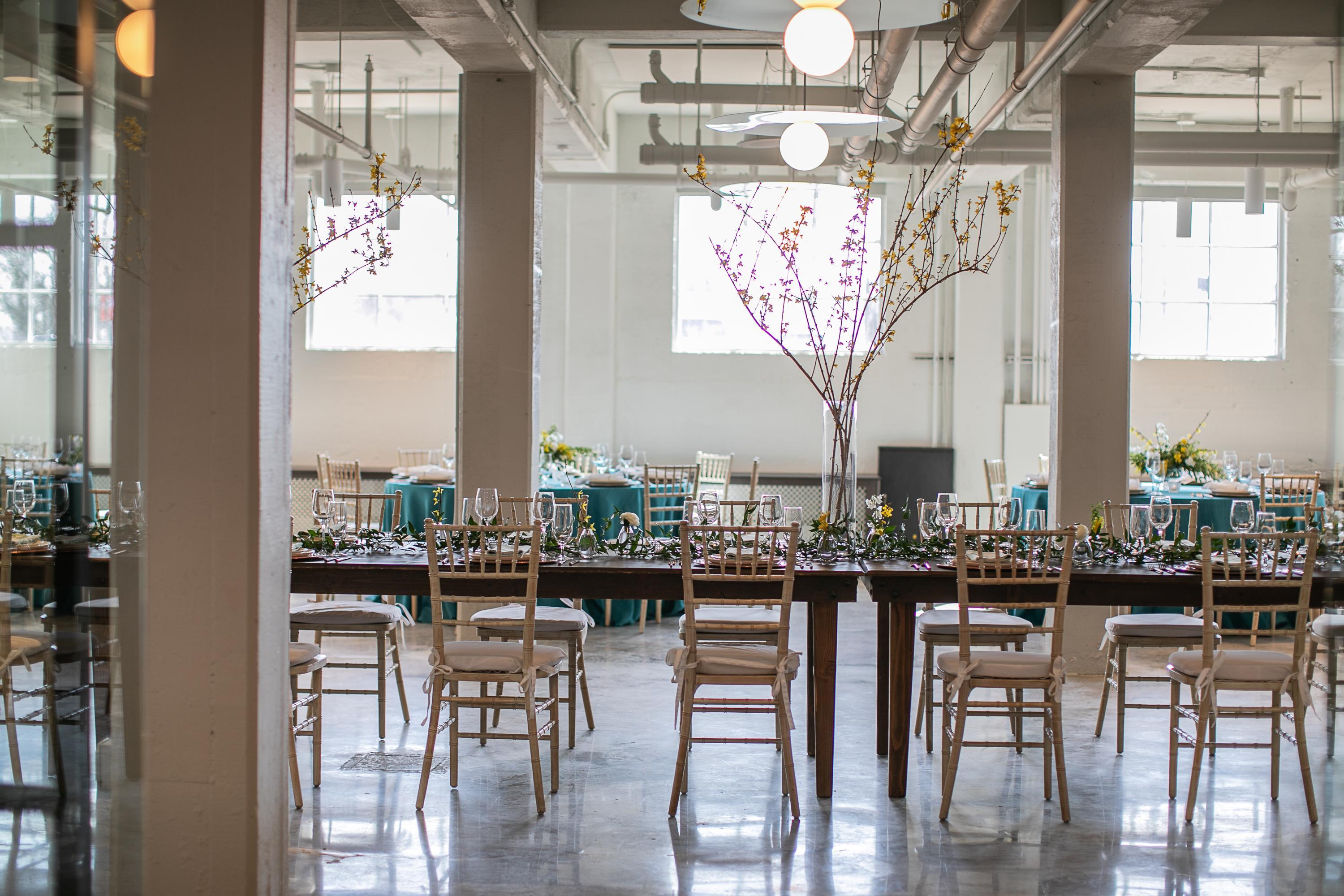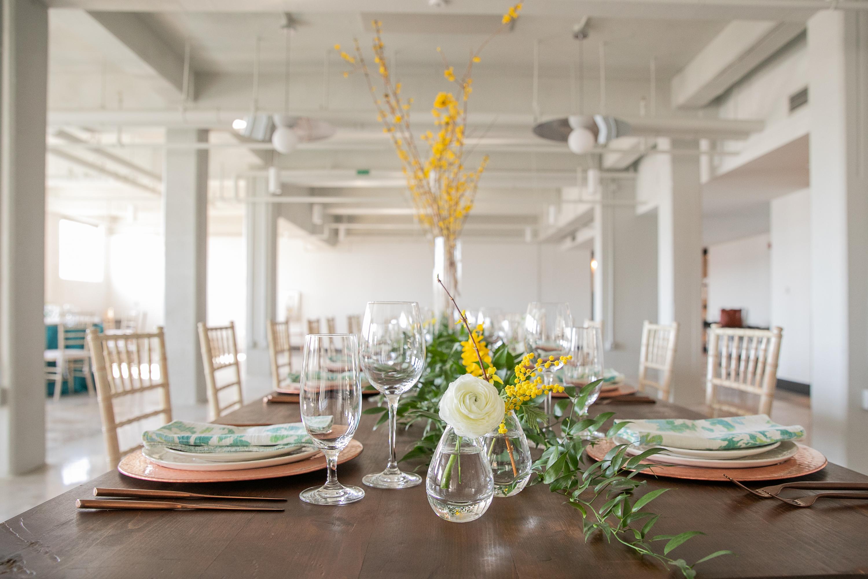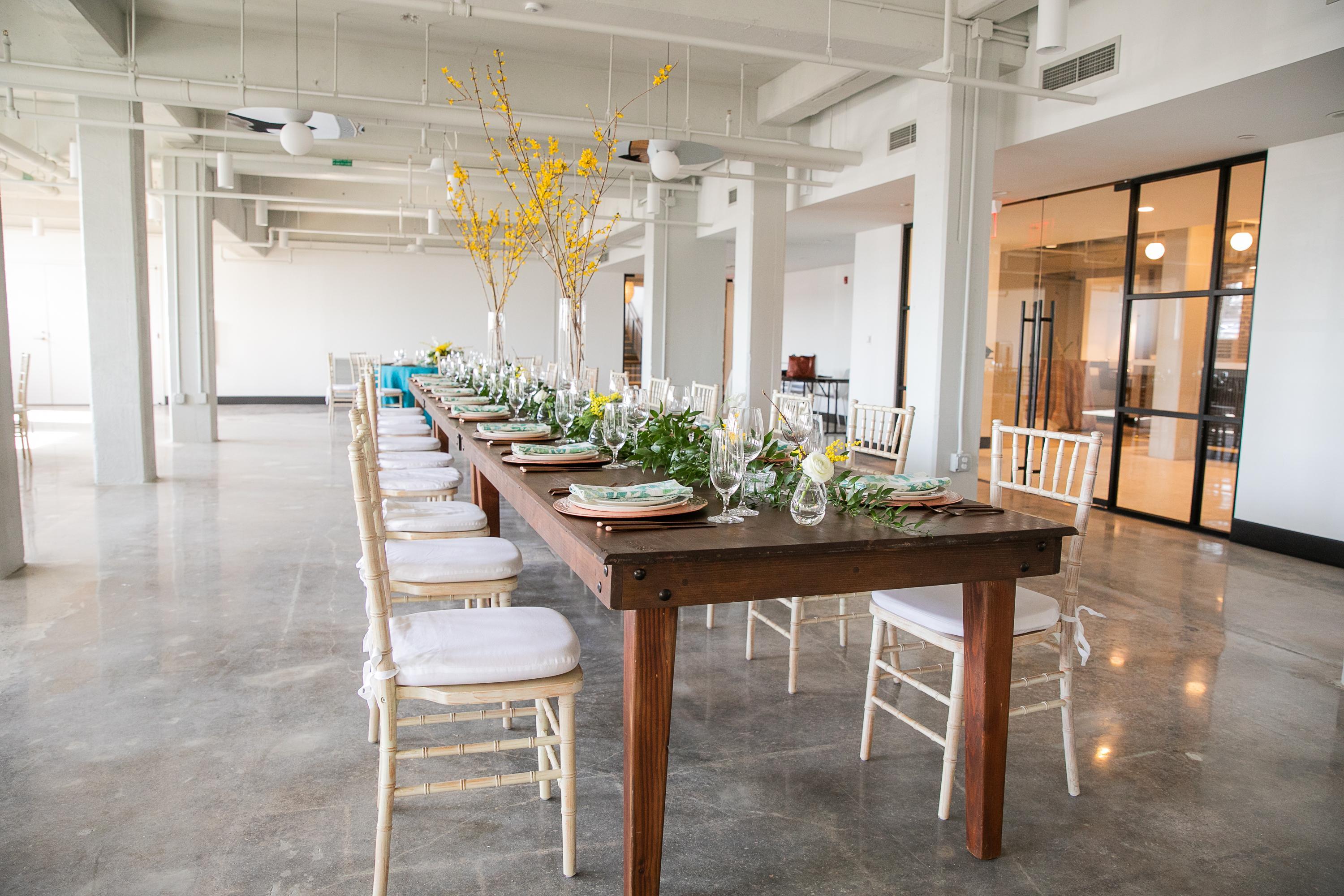Boasting lots of natural light, refinished concrete floors, and a streamlined design, our larger event space is the ideal backdrop for your wedding reception, rehearsal dinner or farewell brunch.