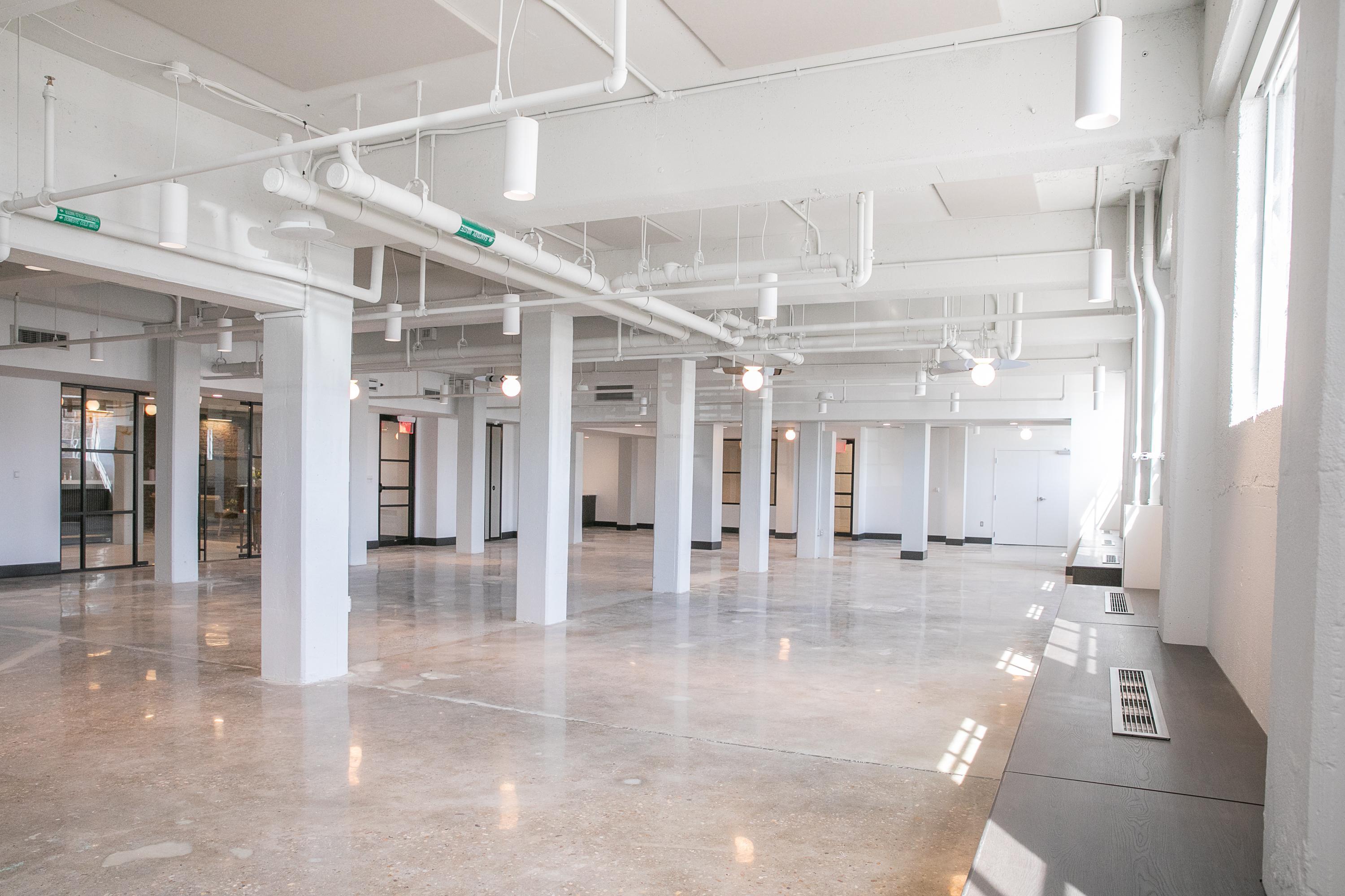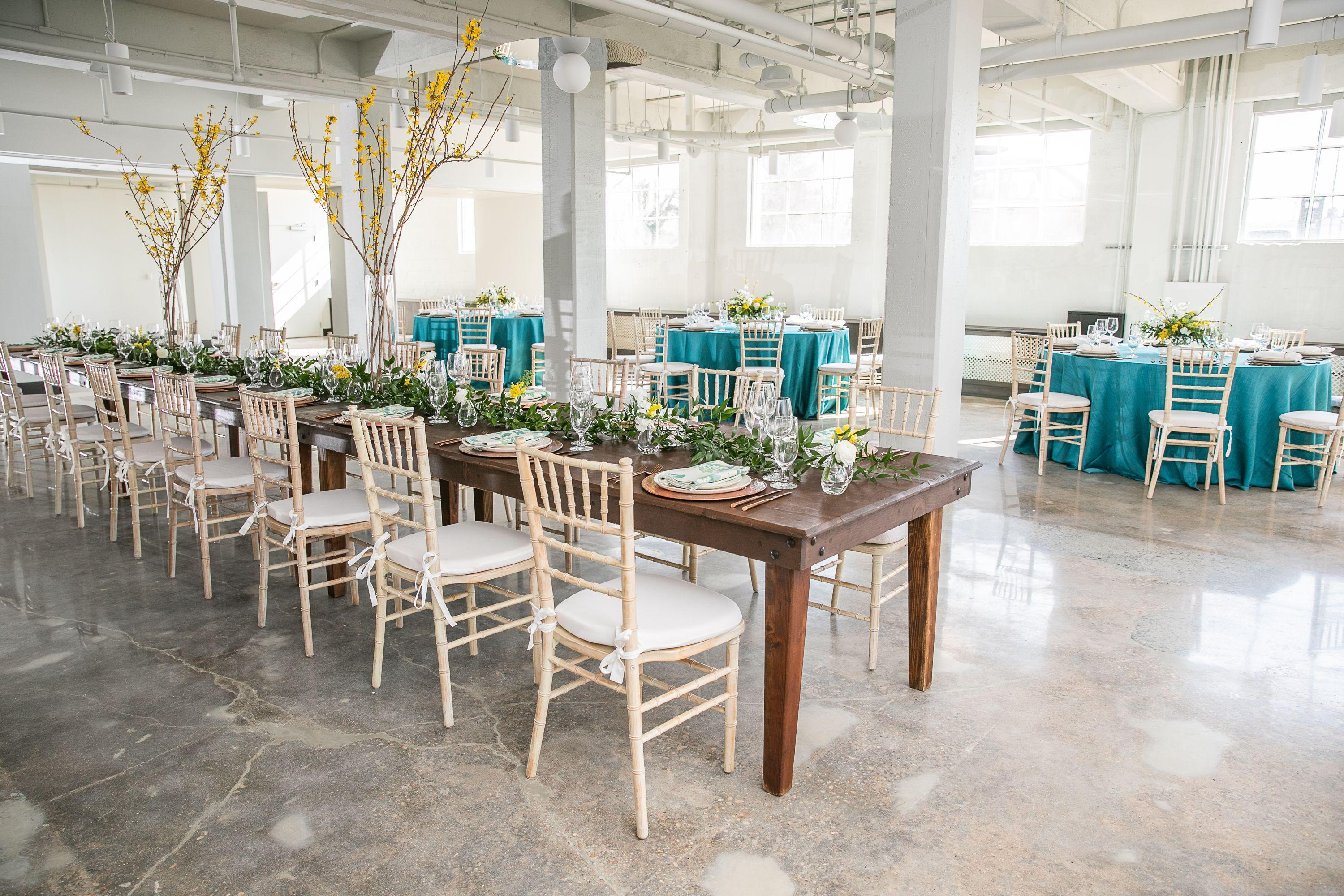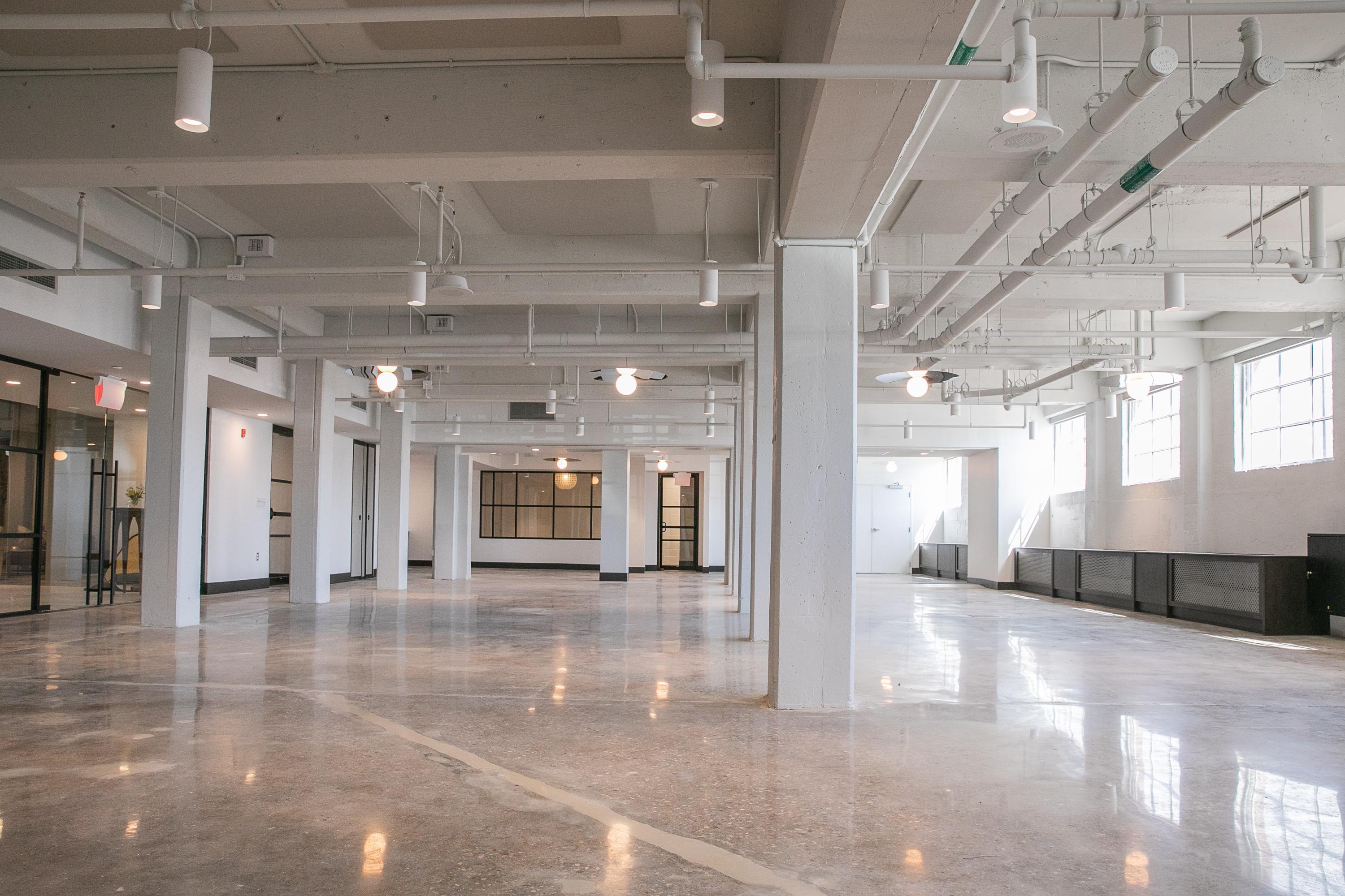 Boasting lots of natural light, refinished concrete floors, and a streamlined design, our larger event space is the ideal backdrop for your wedding reception, rehearsal dinner or farewell brunch.