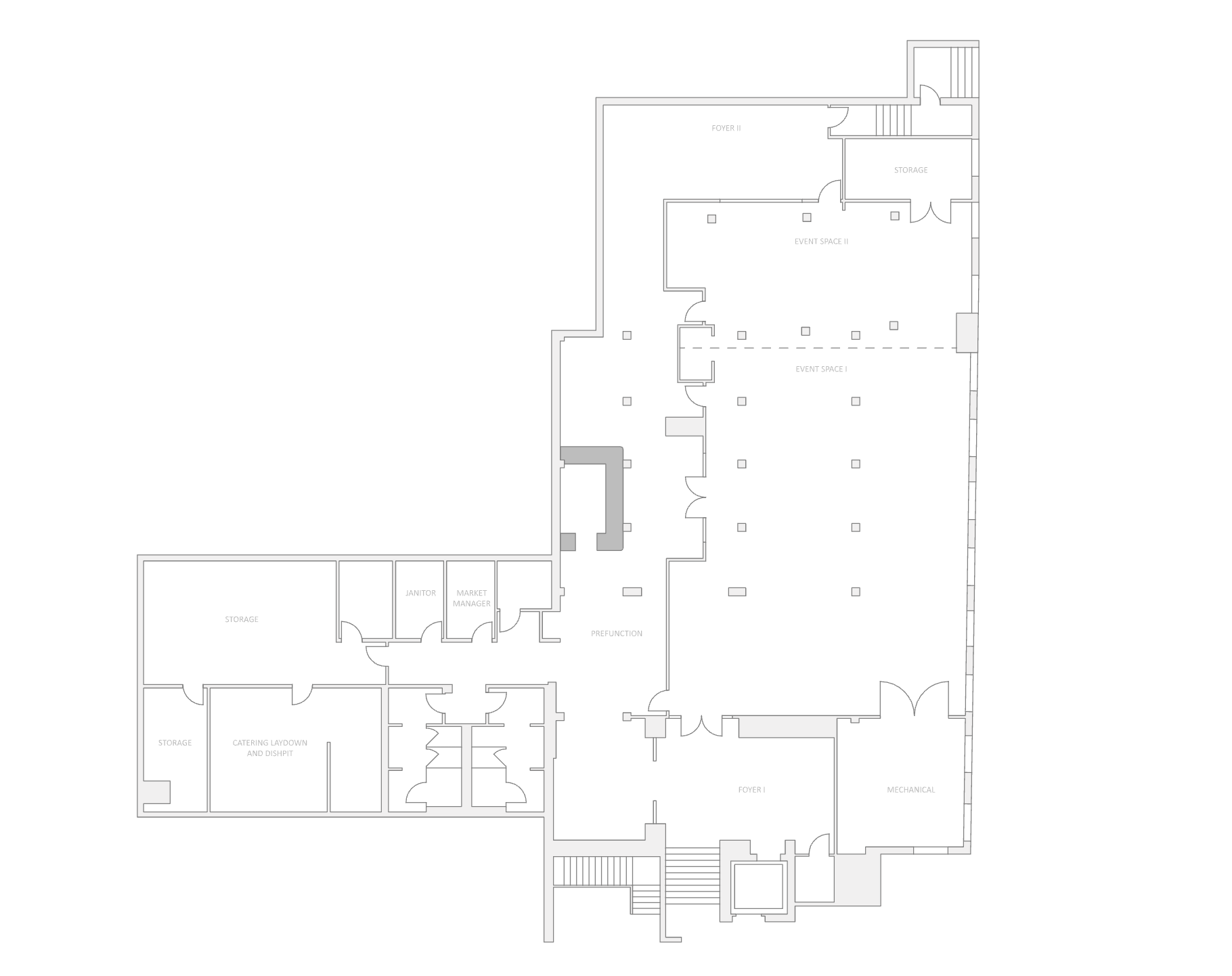 The Brick Cellar at Dairy Market has over 6,000 sq. ft. of event space, which includes a built-in bar, private restrooms, and a catering kitchen.