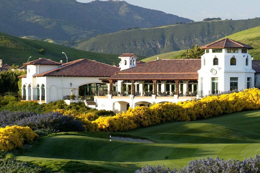 It’s a grand space, with a 25-foot ceiling, antique wrought-iron chandeliers and a wall of huge archways overlooking the fairways. Guests love to step through the center arch onto the “Looking Terrace,” where they have a panoramic view of the greens, Mt. Diablo and the color-streaked sky as the sun sets behind the hills. The archways have tall French doors and windows, and the facility is climate controlled for year-round comfort.