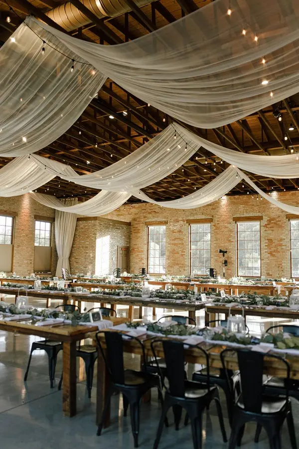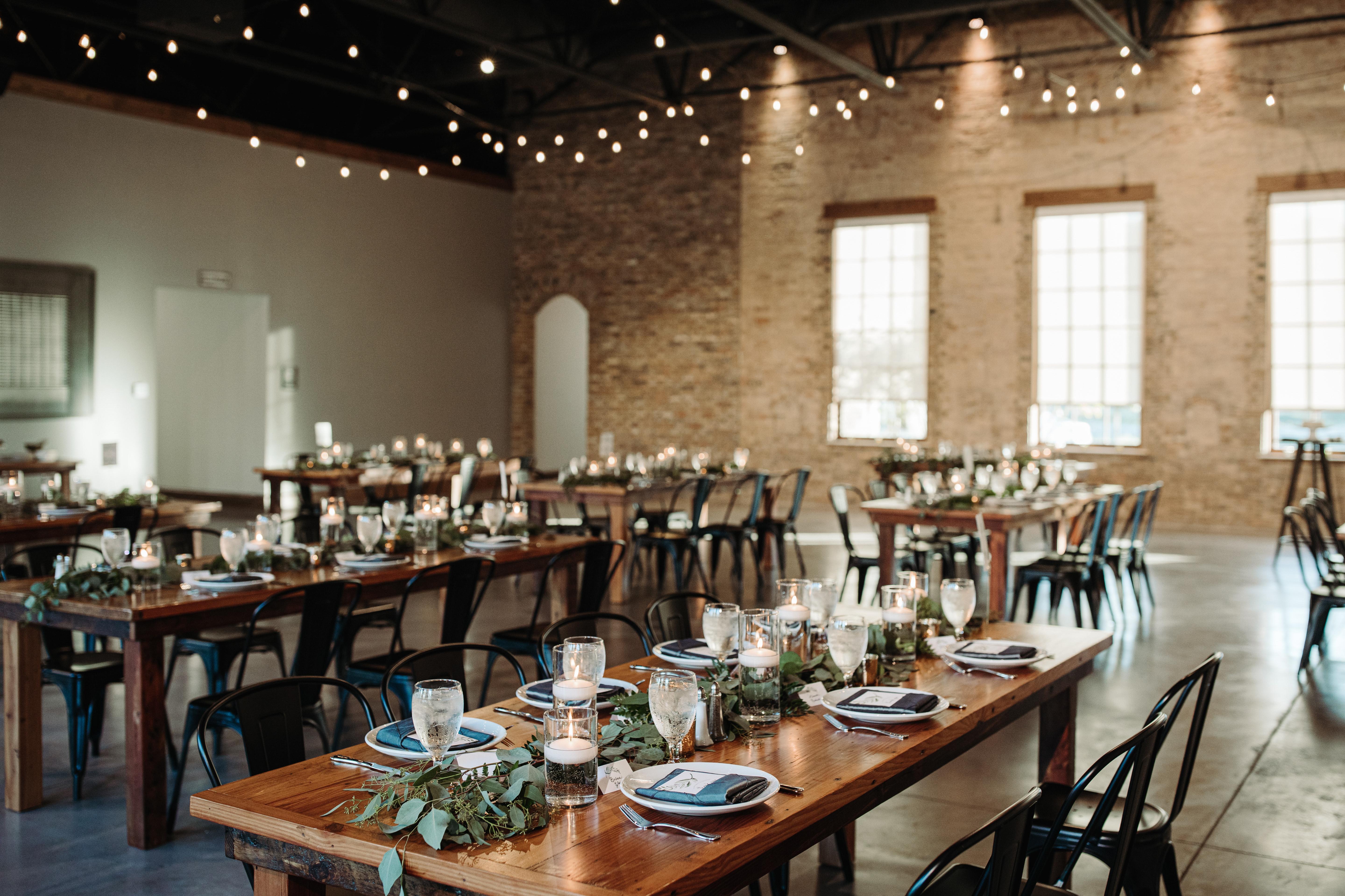 Its 19th century restored architecture provides a beautiful backdrop for any style of wedding decor, and its completely open floor plan allows you to create your own layout, seating arrangements, and space that tailors to your wedding precisely. Some let the brick walls and custom reclaimed barnwood tables speak for themselves, while others choose more elaborate approaches. The decor and layout style is up to you!