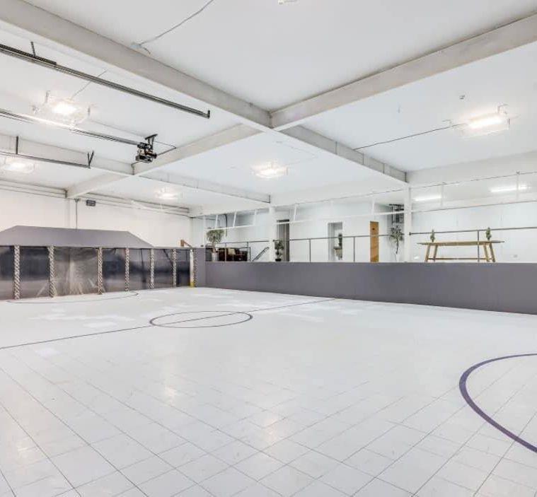 Our lower level includes our 62'x40' ft futsal field, which can also be rented out and used for alternative activities. Our upper level has a dual purpose of a seating area that looks onto the lower level field or a private event space.