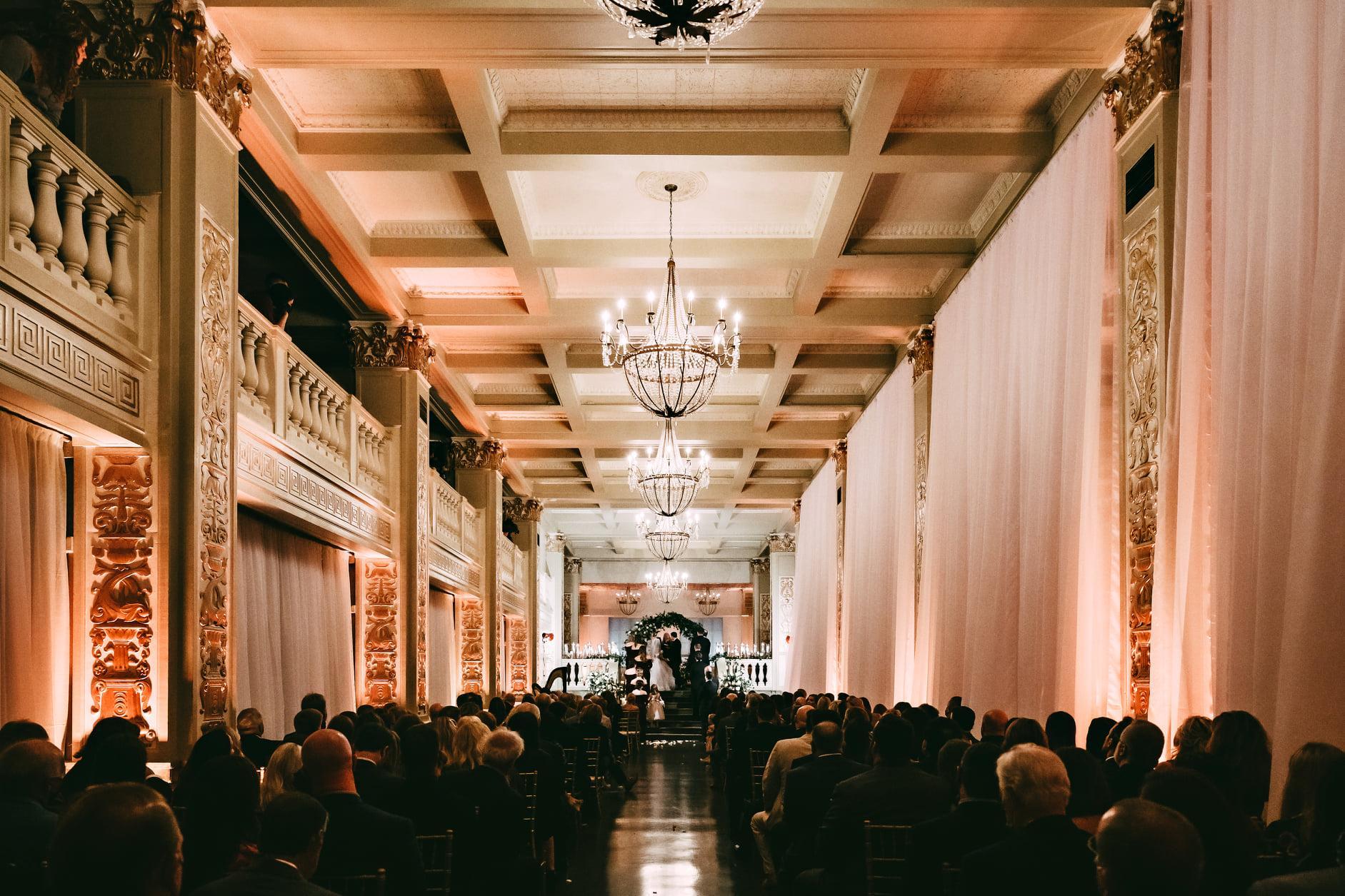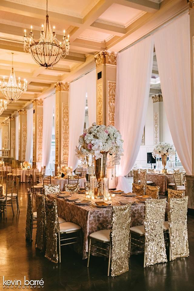 The Cadre Building--based out of Memphis, Tennessee and providing services to wedding couples in Mid-south--is a historic wedding ceremony and reception venue. With charm, sophisticated elegance, and an opportune location, this Memphis wedding venue is an outstanding choice for your special day. The entire space is available to you when you rent the Cadre; the venue offers an elegant 36,000-square-foot Grand Ballroom with an overlooking 2,500-square-foot mezzanine. This space is accented with brilliant chandeliers, intricately crafted columns, and champagne-hued drapery, which means you’ll have plenty of gorgeous locations for stunning wedding photography.