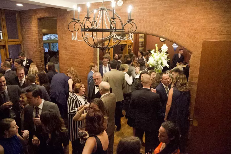 The Carleton Hotel of Oak Park offers more than 6,000 square feet of event space. They have function rooms suitable for weddings of all sizes, from intimate gatherings to grand galas. The venue’s largest event space, the Grand Ballroom, spans 2,500 square feet and can accommodate 150 guests. Decorated in an elegant style, this beautiful ballroom is sure to leave a lasting impression on all in attendance. Its 12-foot ceilings make the space feel even larger. The Foxboro Room is ideal for events of up to 60 guests and showcases a classic aesthetic. Couples can personalize the space, which features a warm color palette, to bring their vision to life. Those hosting smaller celebrations can use the Columbian or Barclay Rooms. The Columbian Room is inspired by the 1893 Columbian Exposition, held in Chicago. For a sophisticated wine cellar-themed backdrop, the Barclay Room is ideal.