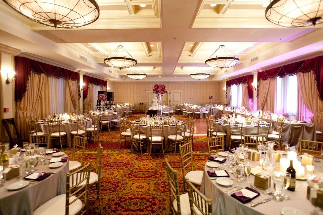 the Grand Ballroom, spans 2,500 square feet and can accommodate 150 guests. Decorated in an elegant style, this beautiful ballroom is sure to leave a lasting impression on all in attendance. Its 12-foot ceilings make the space feel even larger.