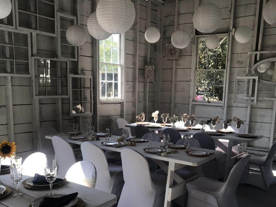 The Carriage House at the Gregory Inn is a new and unique intimate wedding venue. Our carriage house and Pole Barn accommodate your guests! We offer the full experience - that includes chairs, tables, linens, glassware, and plates to the basic rental of the venue and somewhere in between, as well as a 10x30 tent space for food, music, cake, gifts, and more. We can't wait to celebrate with you!