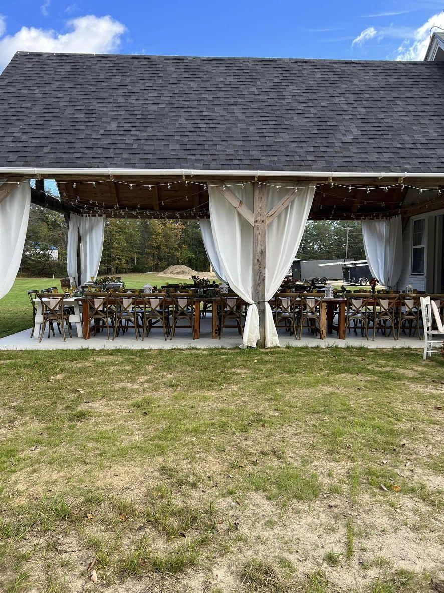 You have two looks to choose from: An all-white venue with white farm tables, or an attached pole barn with dark wood farm tables. The inside seats a maximum of 30 guests, and our beautiful field for outdoor ceremonies seats 50. You could also use the pole barn if the weather is rainy. Whether you are planning a micro wedding, bridal shower, or any other event, we can help you celebrate stress-free!