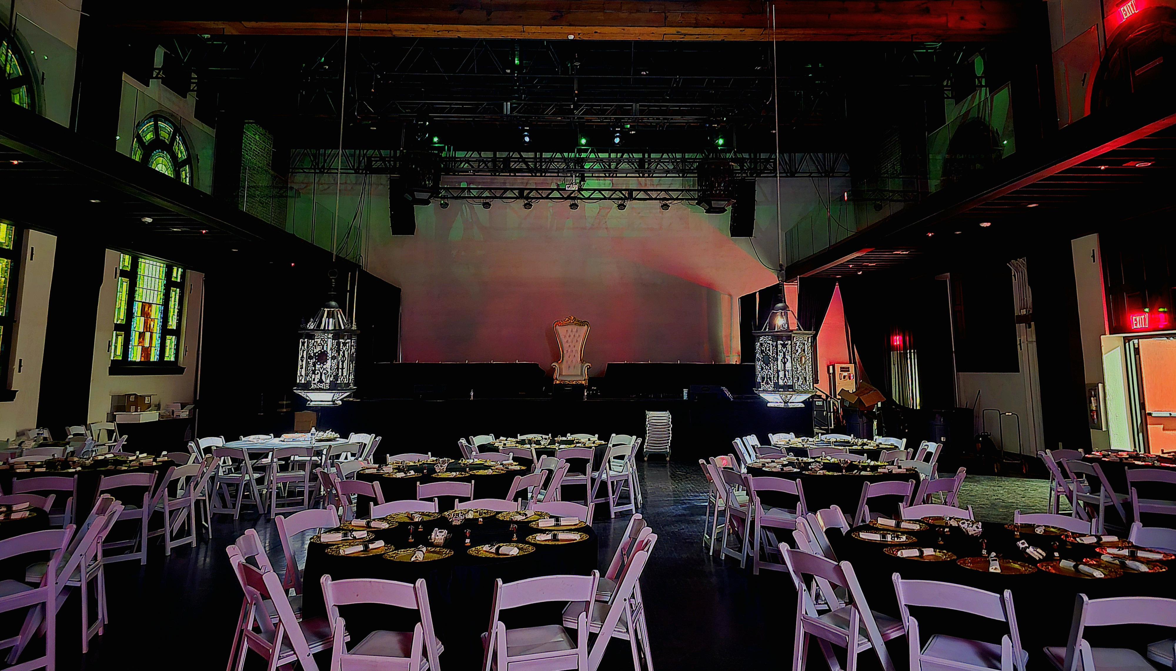 -Customized lighting -State of the art L'Acoustic Sound -Tables/Chairs/Linens -Additional - LED Screen Many more additional upgrades including: -Catering Kitchen -Bars -Green Room/or Bridal Suite -Ante Rooms