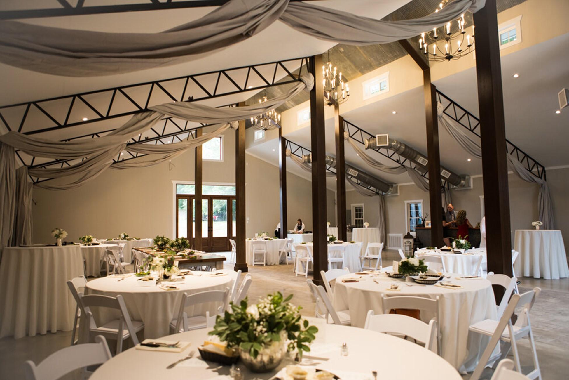 Nestled in an idyllic natural setting, the rustic charm and spacious layout make the barn an ideal location for any event. The barn is climate-controlled year-round and features large stunning chandeliers and elegant draperies. Surrounded by spacious landscapes and patios, the barn offers beautiful and sophisticated country charm.