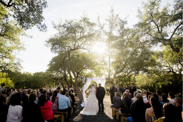 Beautiful ceremony site surrounded by mature, shady live oak trees!