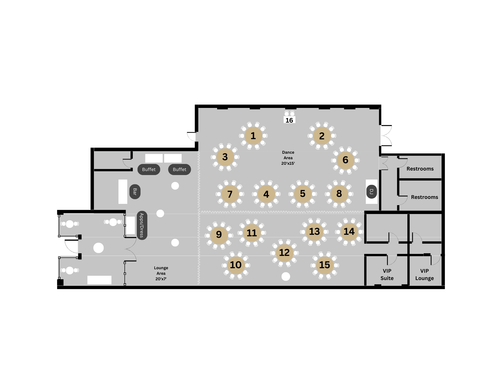 -tables, chairs, place settings -banquet team, security, bartenders -access to VIP Suites -Floorplan and Timeline Creation -set up & clean up done for you