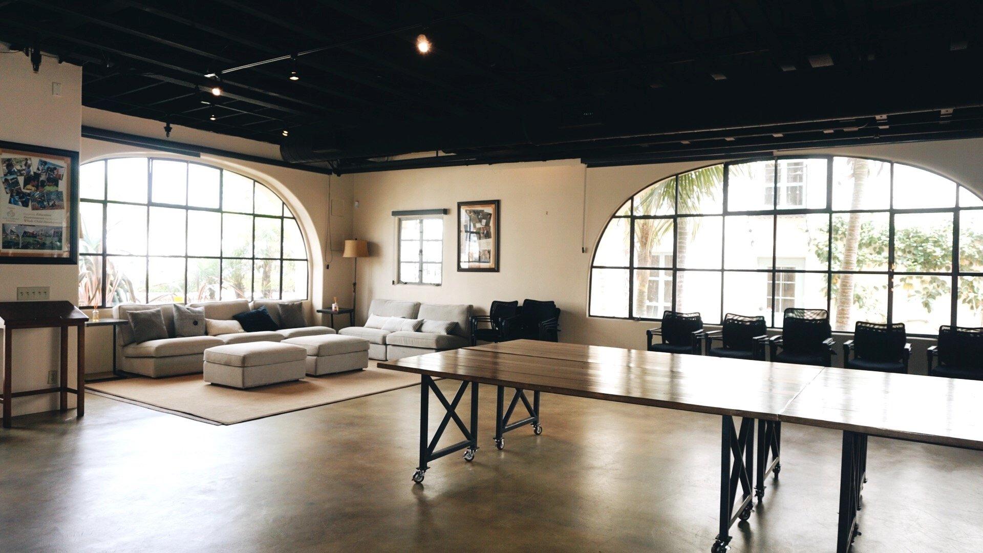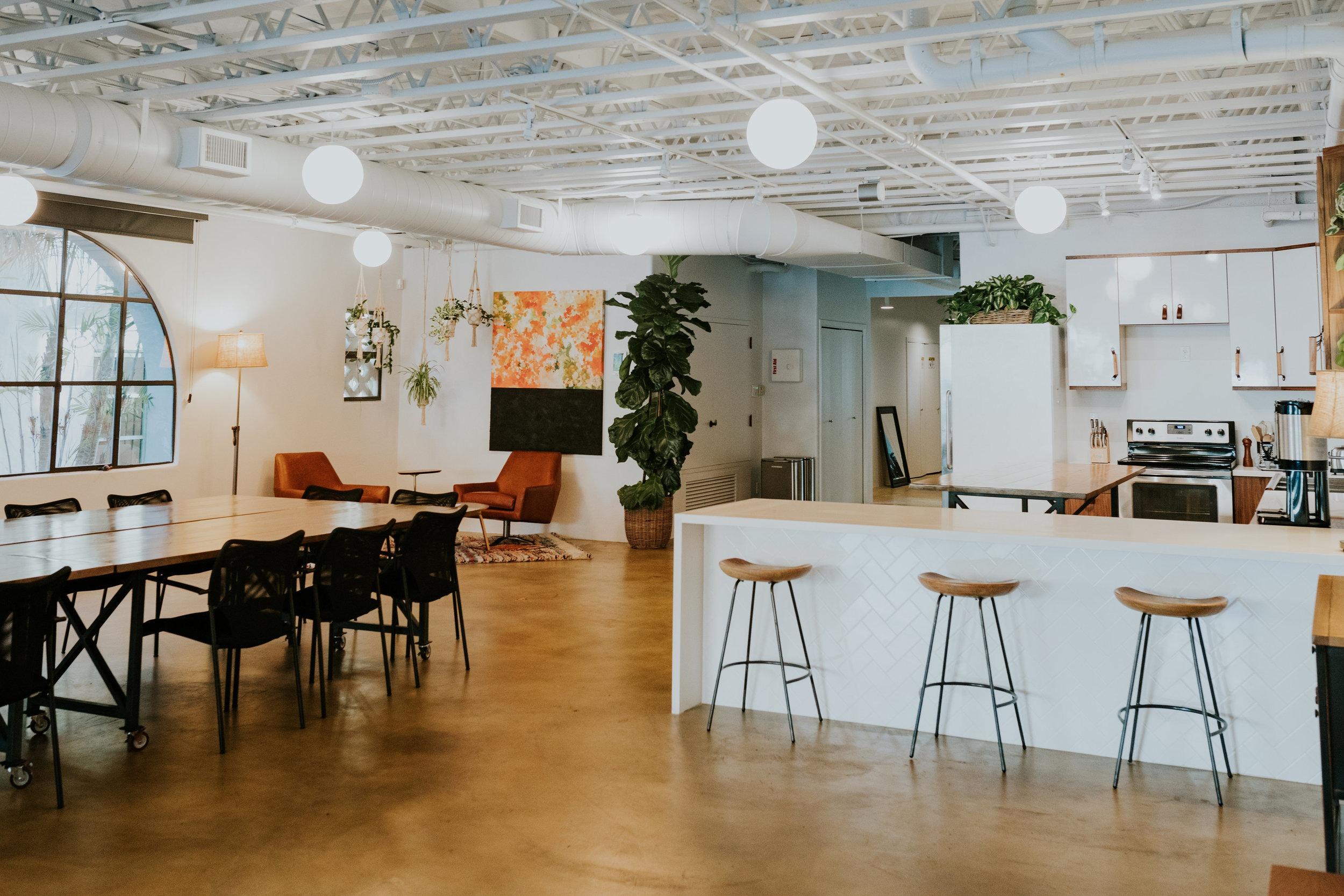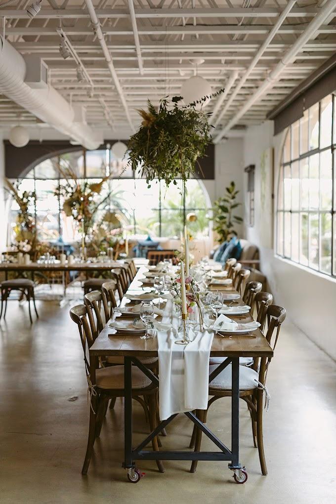 The main room offers a versatile space, featuring a cozy lounge area for intimate gatherings and a full kitchen for seamless catering. With large farm tables and chairs provided for up to 45 guests, you can create a personalized dining experience. The 1000 sqft space can comfortably accommodate up to 147 guests for a standing reception or ceremony.