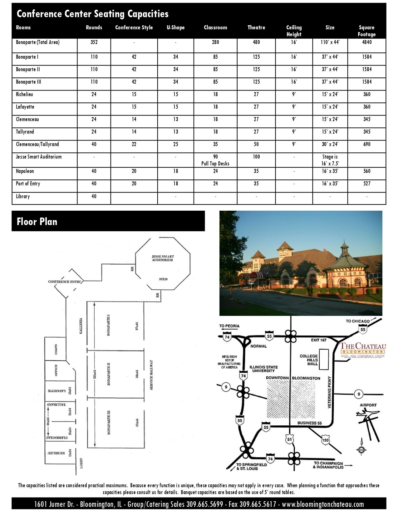 The warmth and elegance of The Bloomington Chateau make us the preferred address for visitors to the Bloomington-Normal area. Located in Bloomington, Illinois just 2 hours south of Chicago, The Chateau Hotel and Conference Center is in a bustling area with excellent shopping and restaurant options, many within walking distance! The property itself consists of 180 specially appointed rooms (singles, doubles, and suites), WiFi throughout the hotel, an indoor pool, hot tub, exercise room, library area with fireplace and over 6000 square feet of meeting space for any type of function
