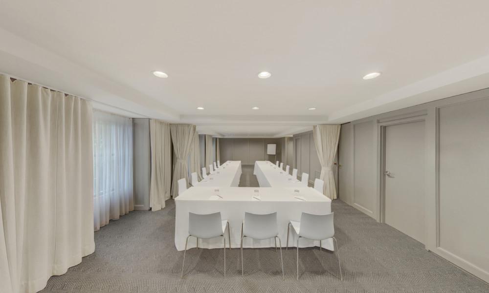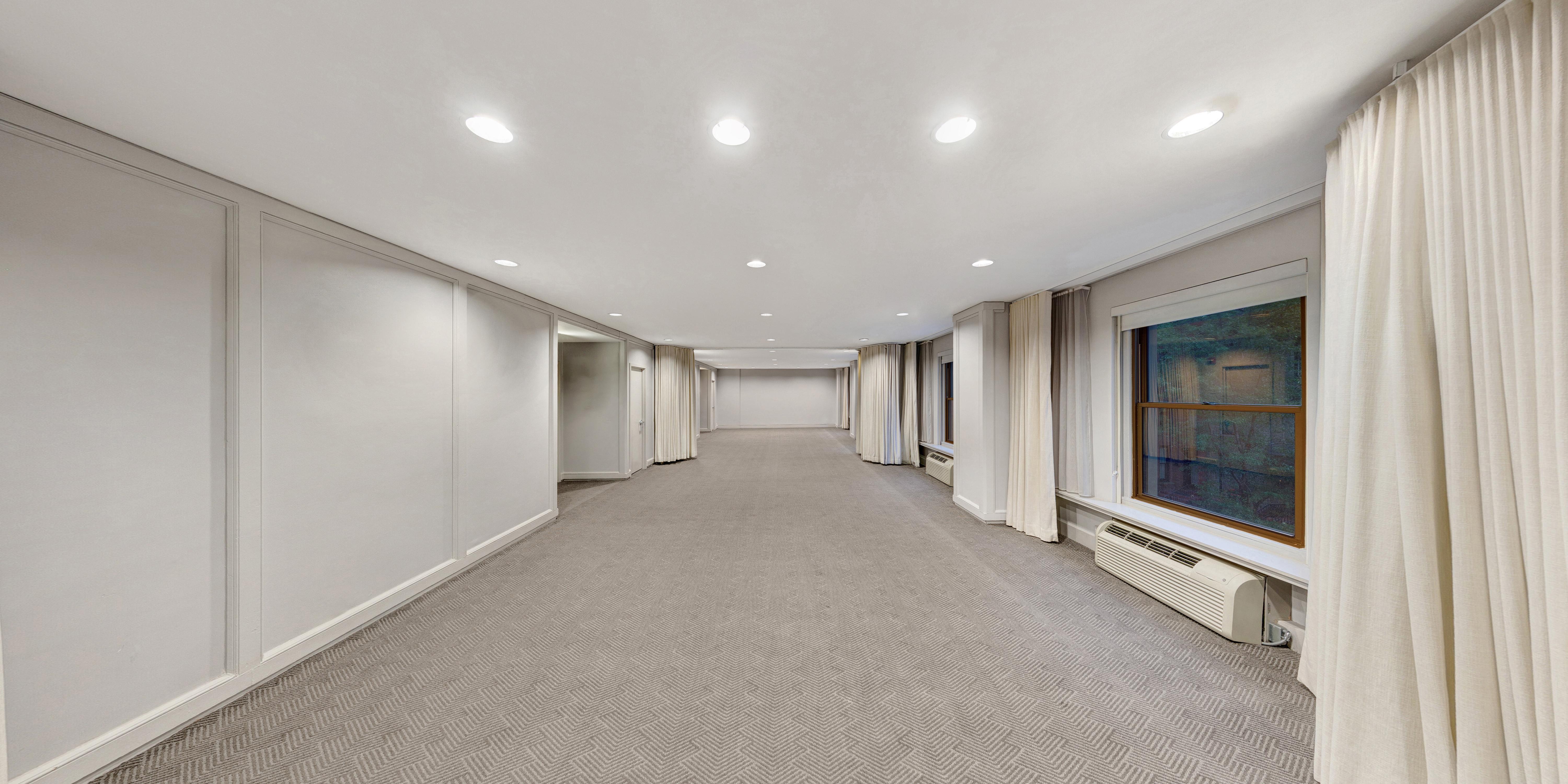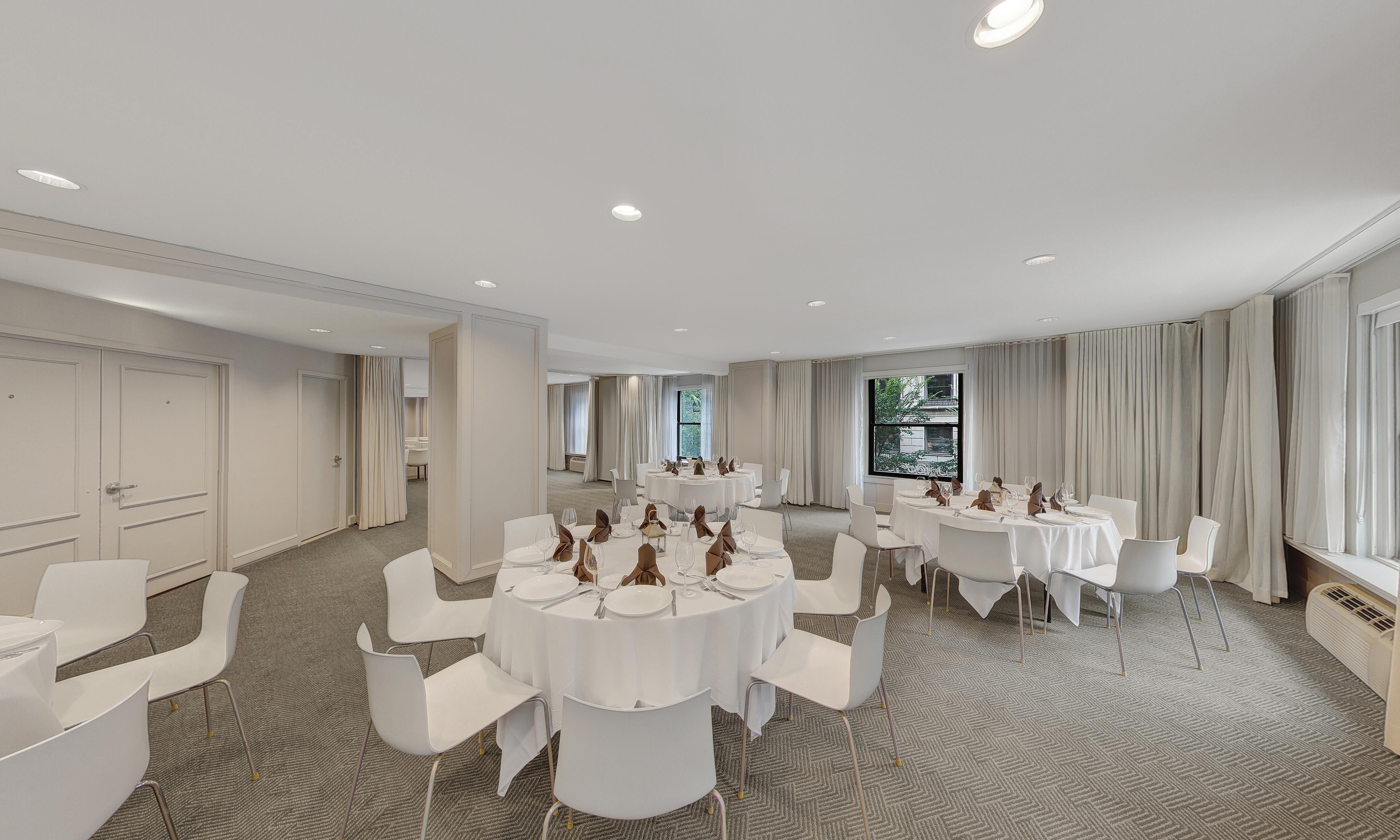 Use of the Ambassador Room for your contracted event time, banquet tables and chairs, standard linens, china, glassware, and flatware. Dedicated event staff and banquet team. Access to adjacent pre-function areas for cocktail hour or guest reception. Wooden dance floor.