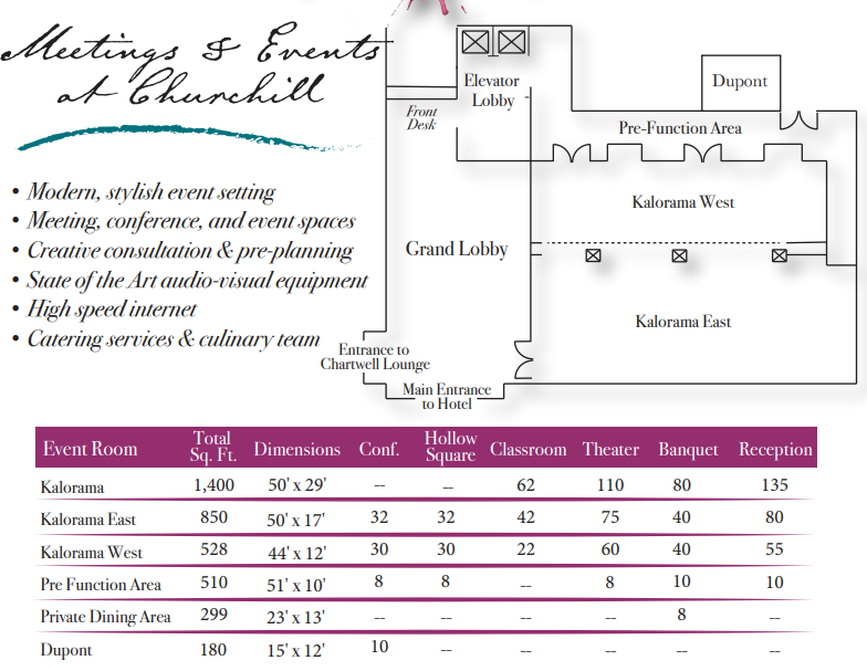 The Churchill is a member of Historic Hotels of America, the official program by the National Trust for Historic Preservation, recognizing its heritage and enduring legacy .Located along historic Embassy Row, your wedding day unfolds in one of the most elegant and romantic neighborhoods in Washington, D.C.