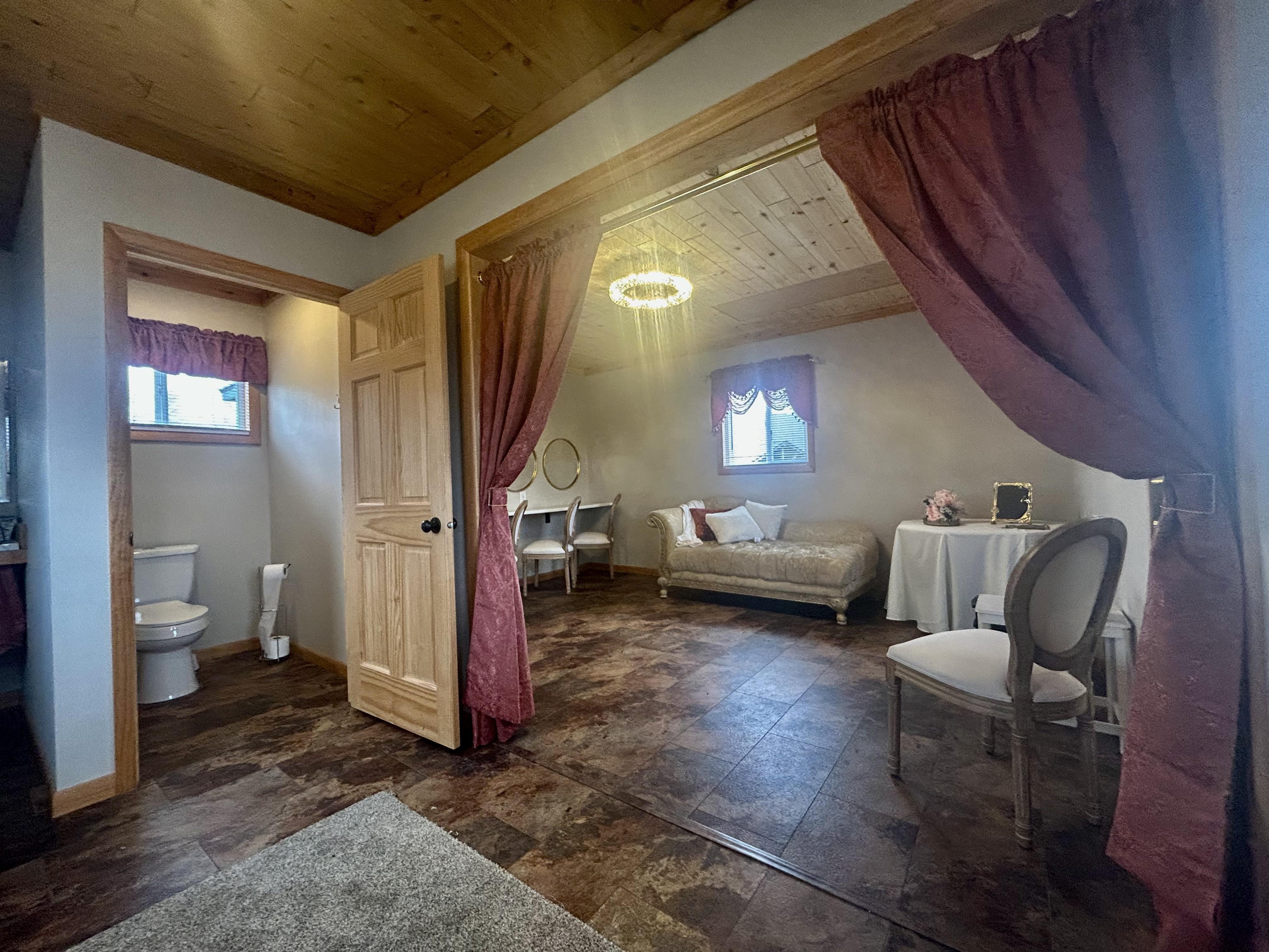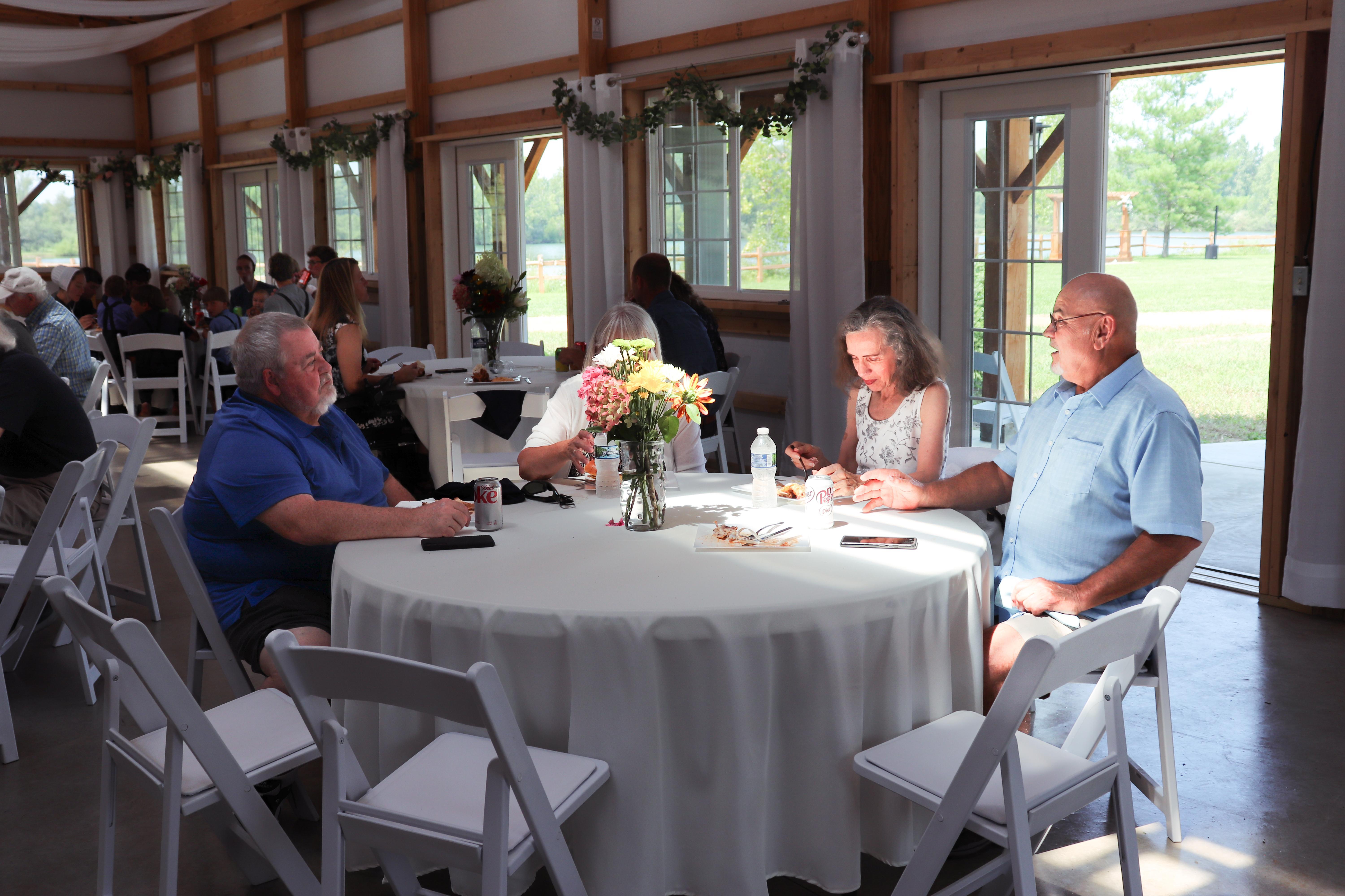 We began our journey in 2015 with a dusty gravel pit and vision for a new home. The gem was the stunning 30 acre crystal clear lake. After purchasing the property we found ourselves hosting church activities and work functions as people truly loved being here. Slowly, we began adding amenities to the property. In 2020 one of our daughters got engaged. As she began looking for a venue to host her wedding we came to realize that the perfect spot was right in front of us. We wanted it to be a very special place and we went to work to create a beautiful wedding venue. There are many opportunities on the property for one of a kind pictures. There are two picturesque options in front of the lake for the service and a new reception building that can seat up to 200 guests. With a 5 acre campus larger weddings can be accommodated with tent rental.