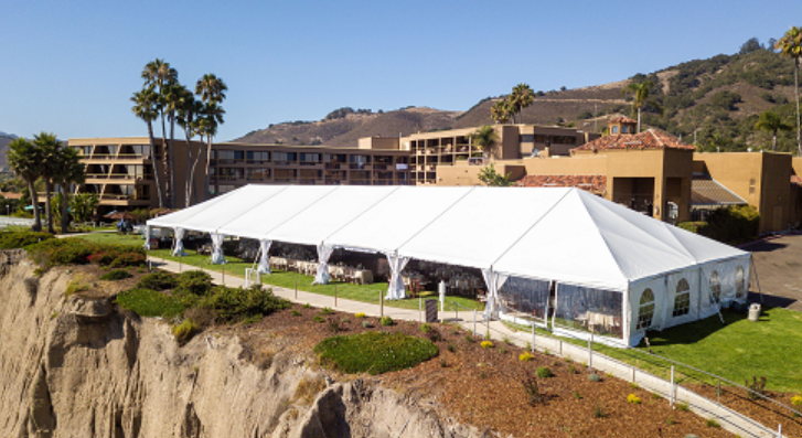 This outdoor venue treats attendees to breathtaking sunset views of the Pacific. Our tents are custom-ordered with beautifully draped ceilings and French doors. The tent experience allows you to maximize our oceanfront location, lending endless seascape views to your ceremony, champagne reception, dinner and dancing.