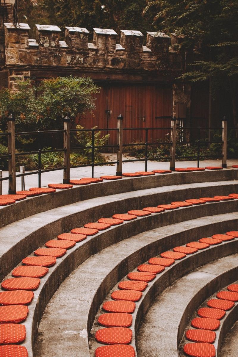 Events may be held inside or outside in the courtyard or the amphitheater. The rental period includes up to five hours for the event.