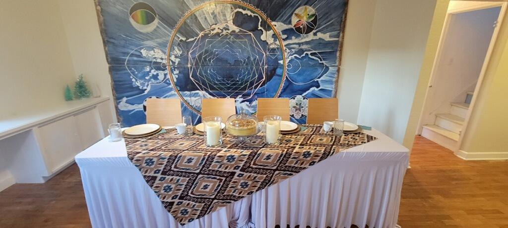 Looking for a simple yet enchanting wedding venue? Step into our 1940’s cottage.. adorned with Sacred Geometry Art! From authentic barnwood tables to a charming garden out back, every detail adds to the magic. Picture starting your special day with a private meditation or yoga class in our Cloud Loft, setting the perfect tone for your union. Tailored for micro-weddings and elopements, our venue ensures warmth, love, and authenticity. We've got you covered every step of the way, from finding your wedding dress to the officiant! Please note, as a sober venue, we don't allow alcohol on the premises. However, you're welcome to bring in outside food and beverages. Let us be a part of your love story at Cloud House, where heartfelt celebrations await!