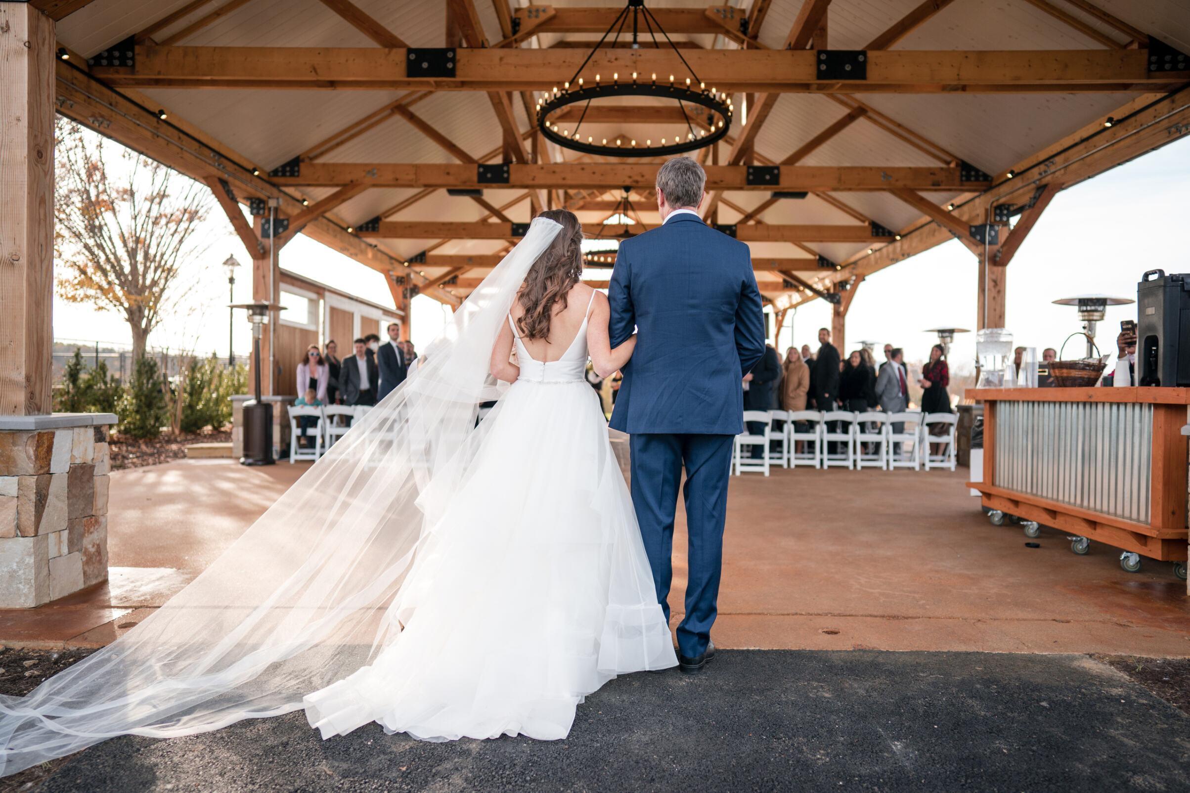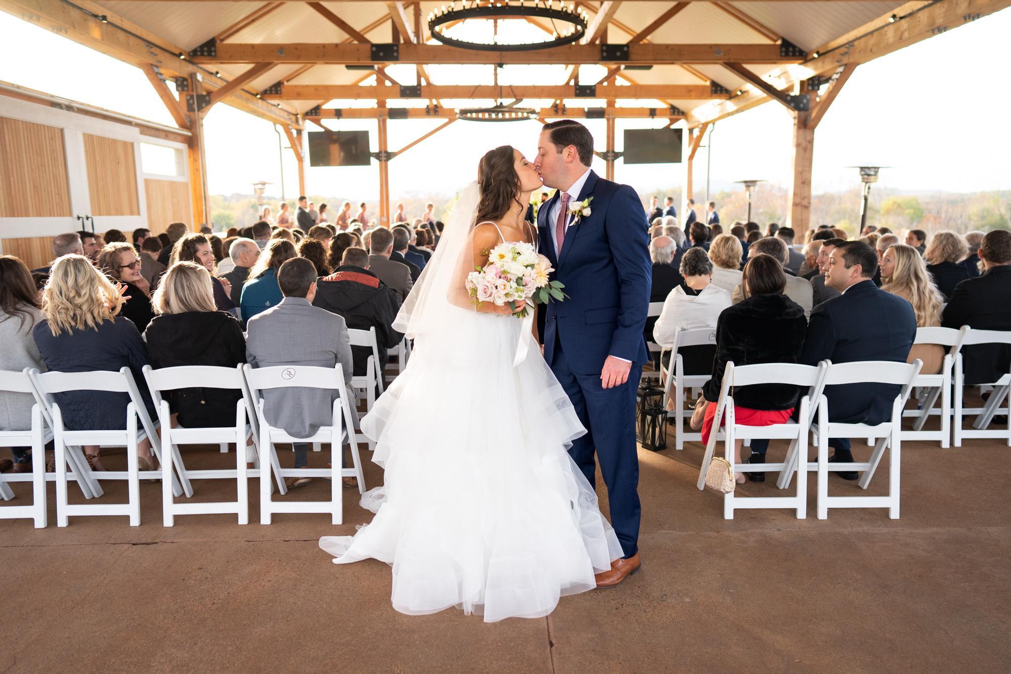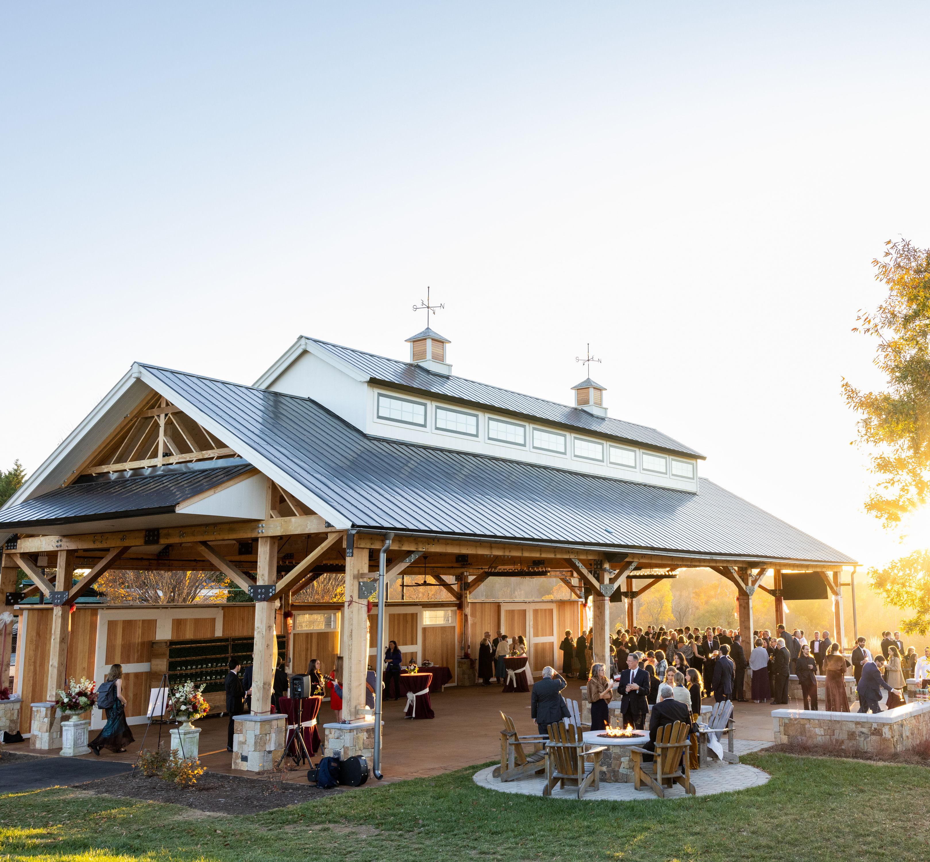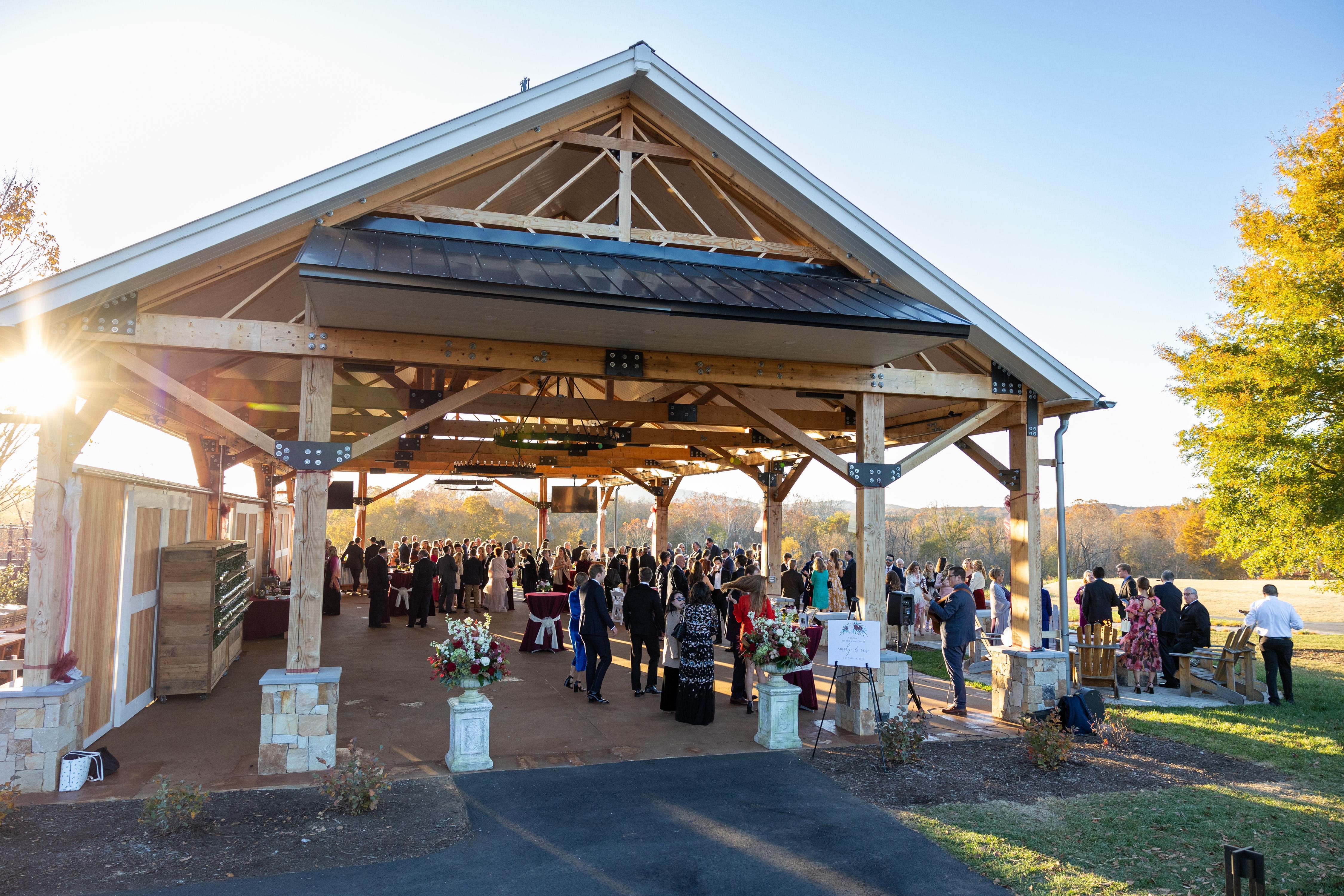 Designed by the team behind Pippin Hill, this beautiful, new open-air pavilion overlooks the golf course and the Blue Ridge Mountains, and it is covered so you would not need to worry about renting a tent for your outdoor space.