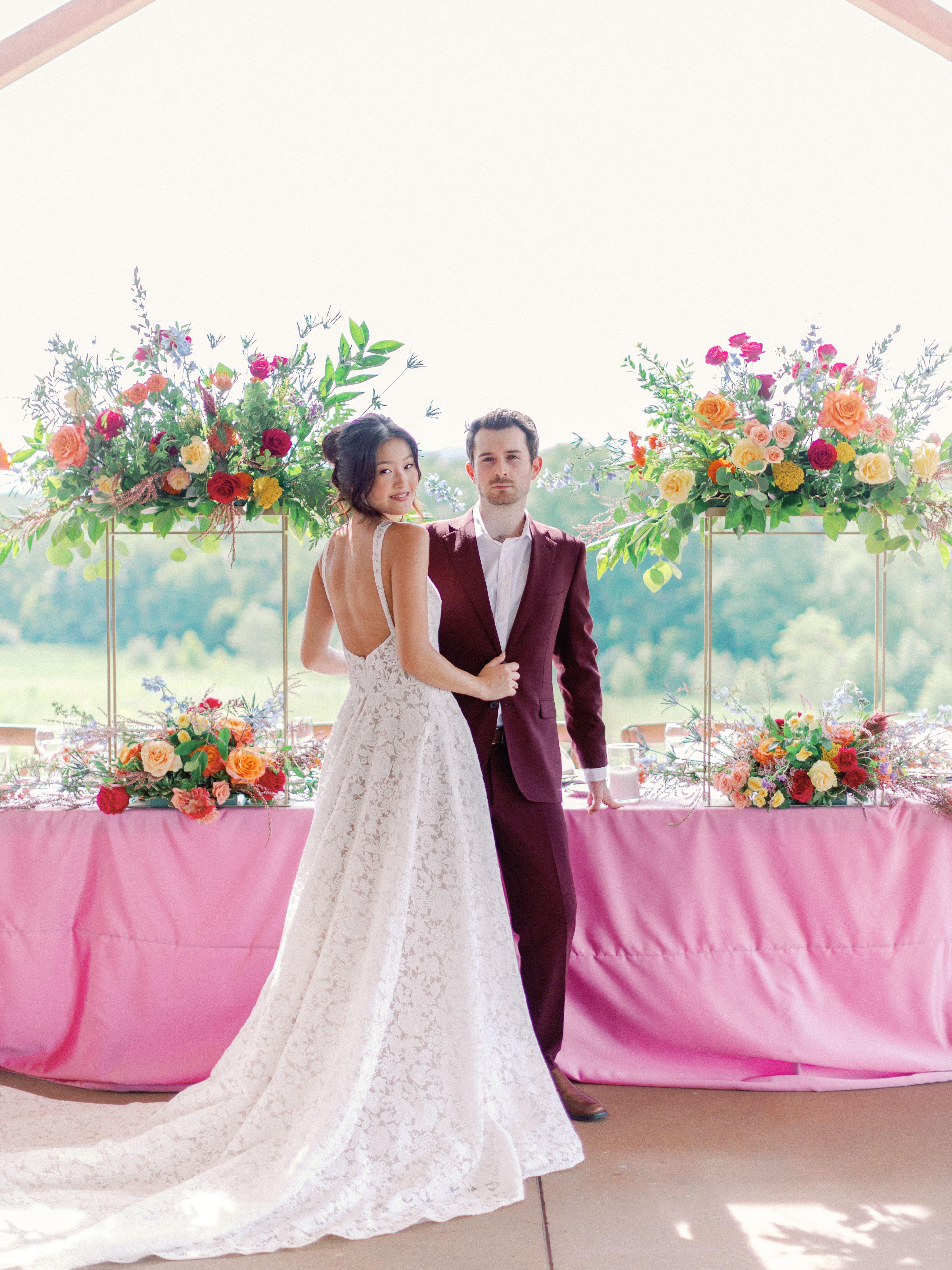 As a full-service venue, we offer in-house catering, rentals, and several unique locations for your big day! Our beautifully renovated Ballroom was designed with you in mind—it provides a blank canvas to transform into whatever vision you love (and has beautiful local reclaimed wooden floors)! For outdoor ceremony, we have two beautiful options. The first is on the 10th tee. This location overlooks the golf course and the Blue Ridge Mountains. The other outdoor option is the Glenmore Pavilion. Designed by the team behind Pippin Hill, this beautiful, new open-air pavilion overlooks the golf course and the Blue Ridge Mountains, and it is covered so you would not need to worry about renting a tent for your outdoor space. This location is perfect for both ceremony and reception.