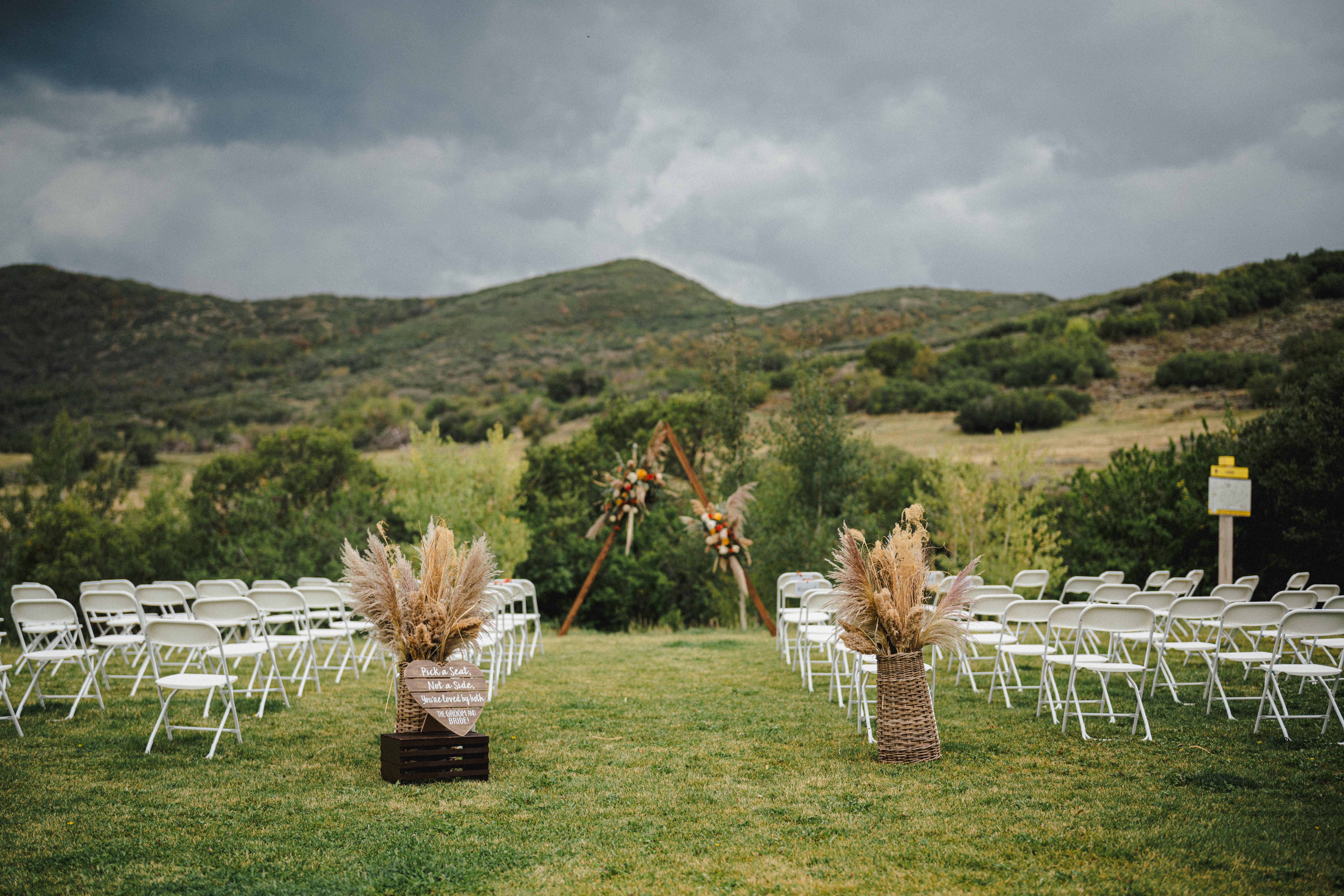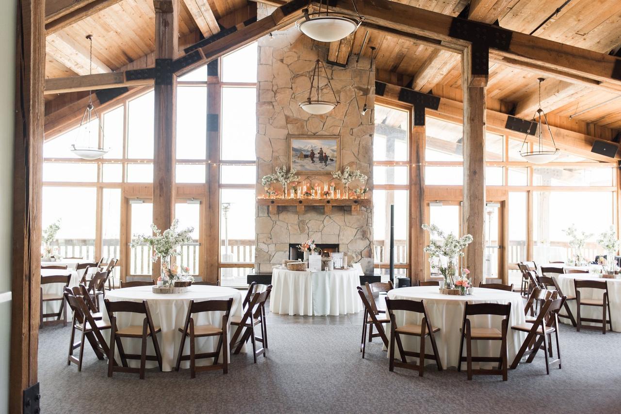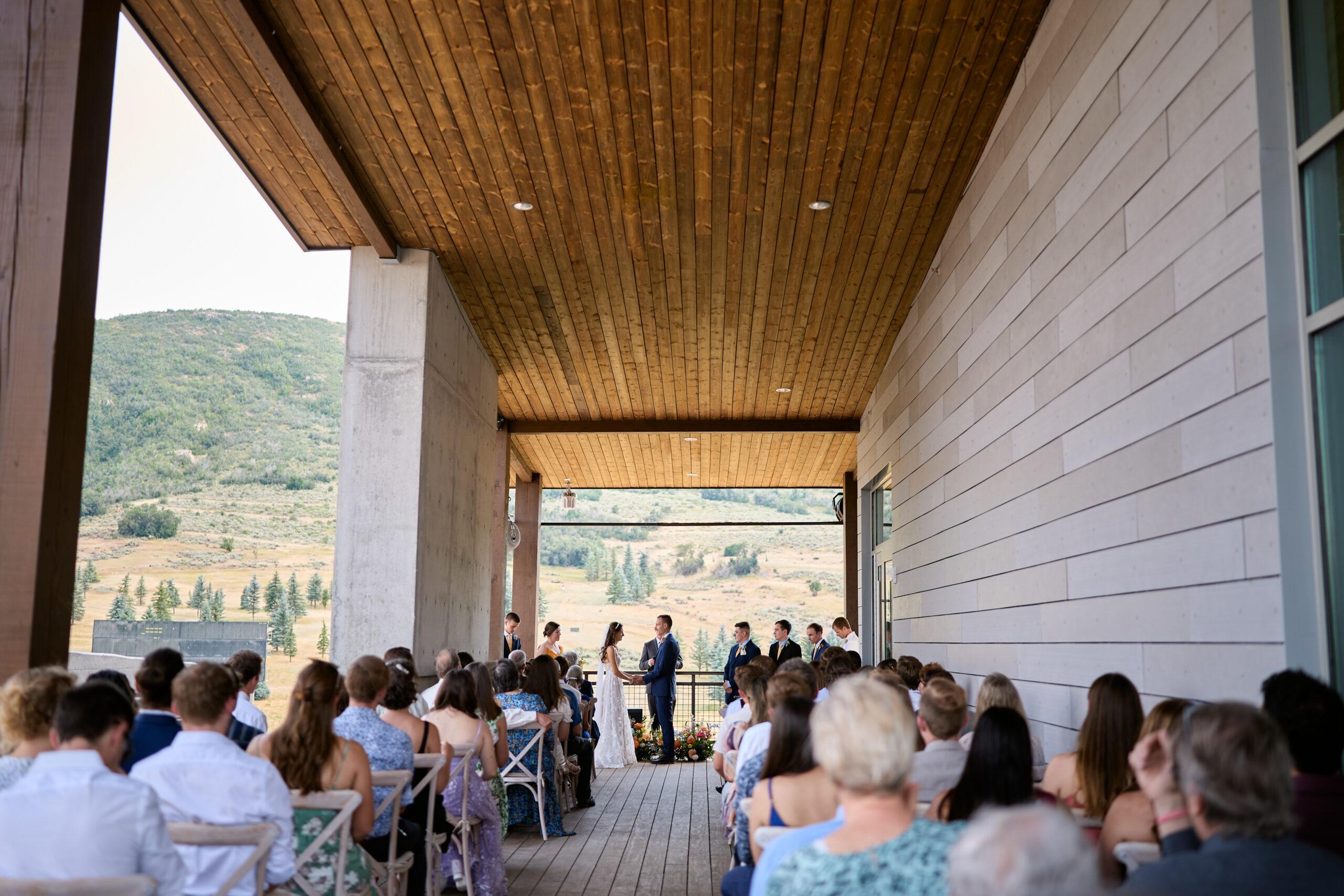 Soldier Hollow offers breathtaking wedding ceremony sites, including a spacious main lawn overlooking Heber Valley and Deer Creek Reservoir, which is especially stunning in late summer and early fall. Couples can also exchange vows on the lodge’s patio or inside by a grand stone fireplace framed by floor-to-ceiling windows. The lodge serves as an ideal reception venue with a large central room for dining and dancing, along with a wraparound patio perfect for cocktails and sunset views. On-site dressing rooms accommodate the wedding party, while the surrounding mountains, rolling hills, and valleys create a secluded, picturesque setting for an unforgettable celebration.