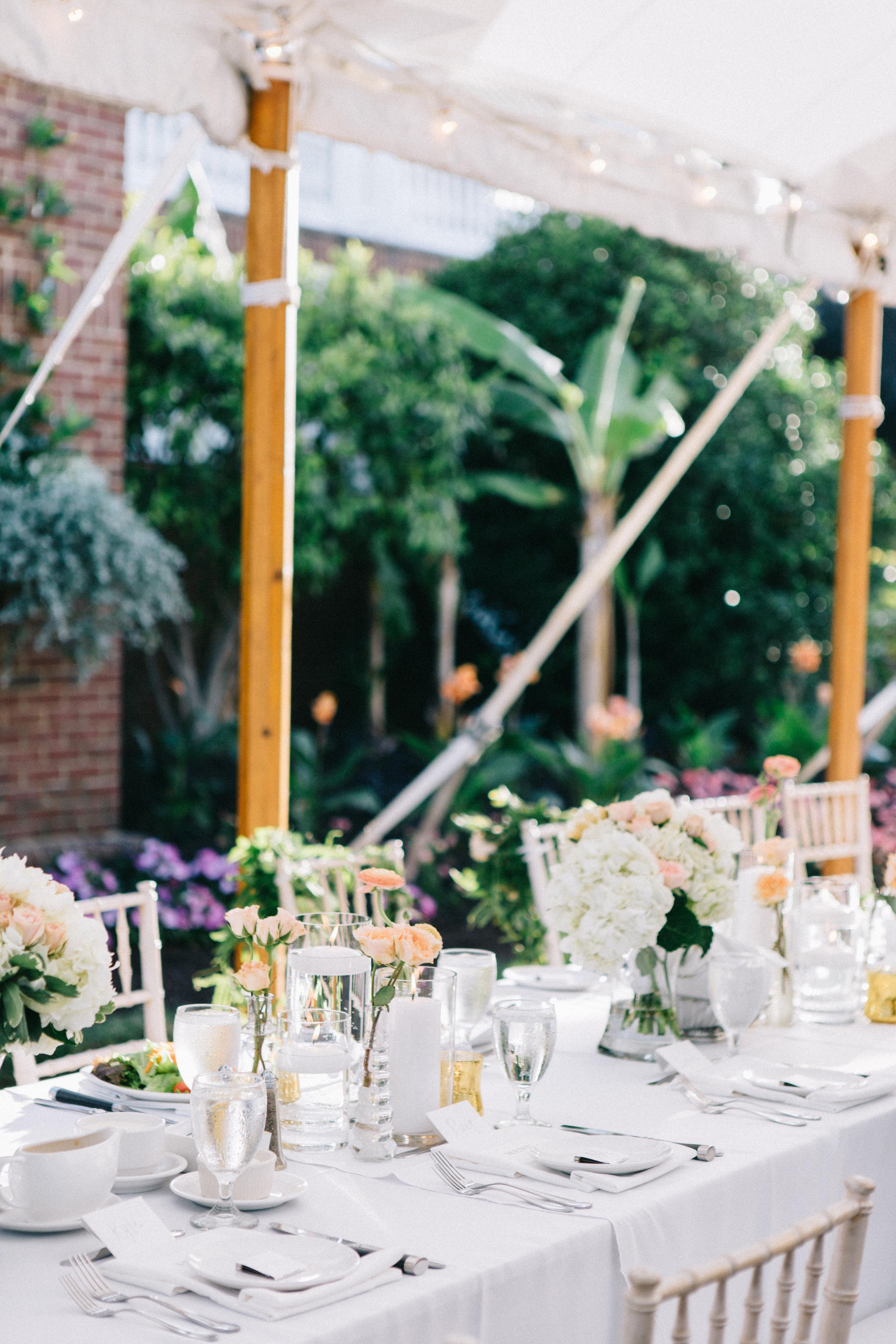 Our garden, filled with gorgeous florals and a romantic fountain, offers a stunning backdrop for you to exchange your vows. OR add a tent for the perfect party outdoors in the garden!