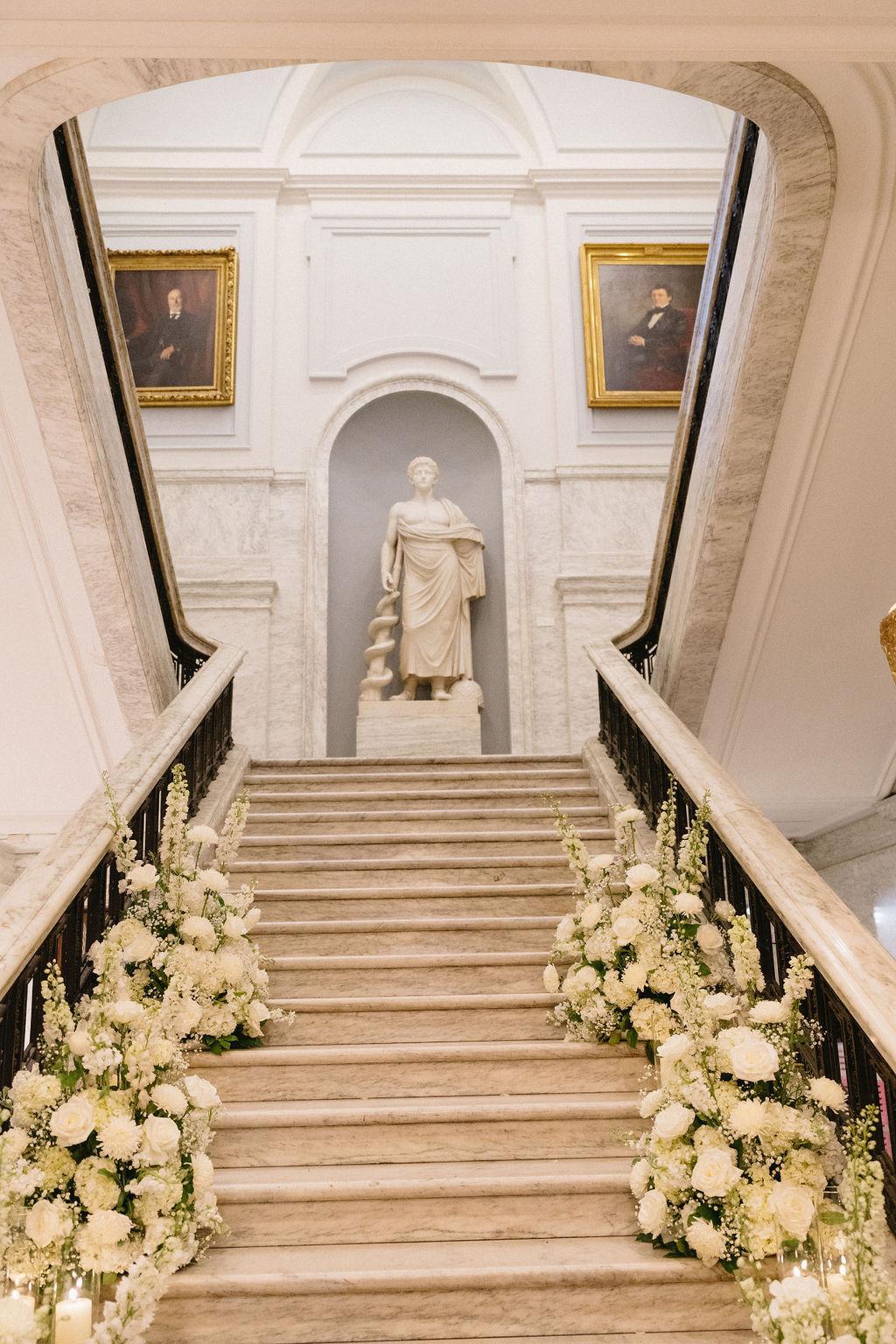 As you enter our historic building, you are greeted by the stunning Marble Rotunda. The all-white octagonal interior, framed by majestic columns, provides a sophisticated space ideal for receptions and pre-event gatherings. Accenting the rotunda is the grand staircase, which leads to the great halls of the second floor, and is perfect for photography opportunities.