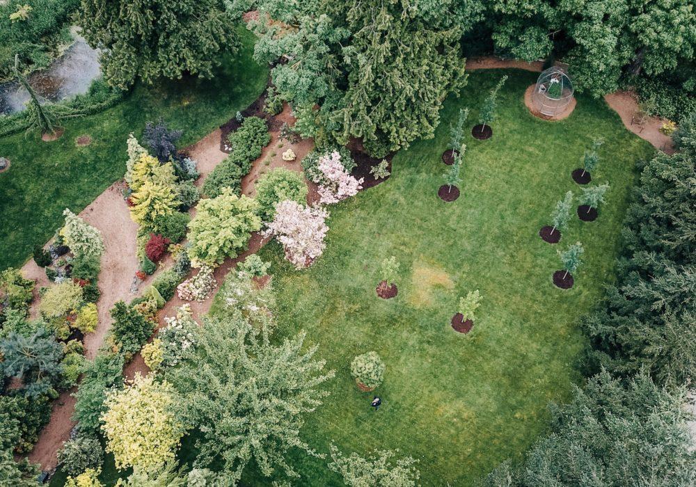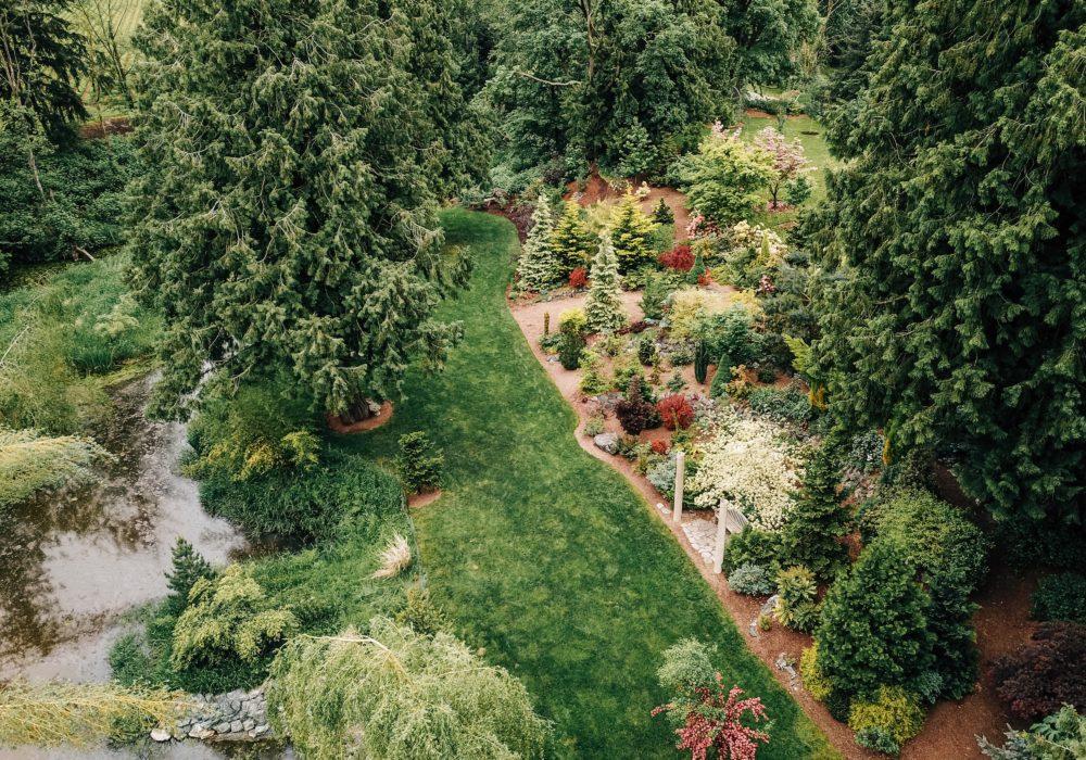 Layers of trees form a natural audience for your event. Ancient Cedars anchor the well-established plantings bring the beauty of the Northwest into your ceremony. On the side opposite the garden are natural year-round ponds and willow trees making this garden a truly intimate spot.
