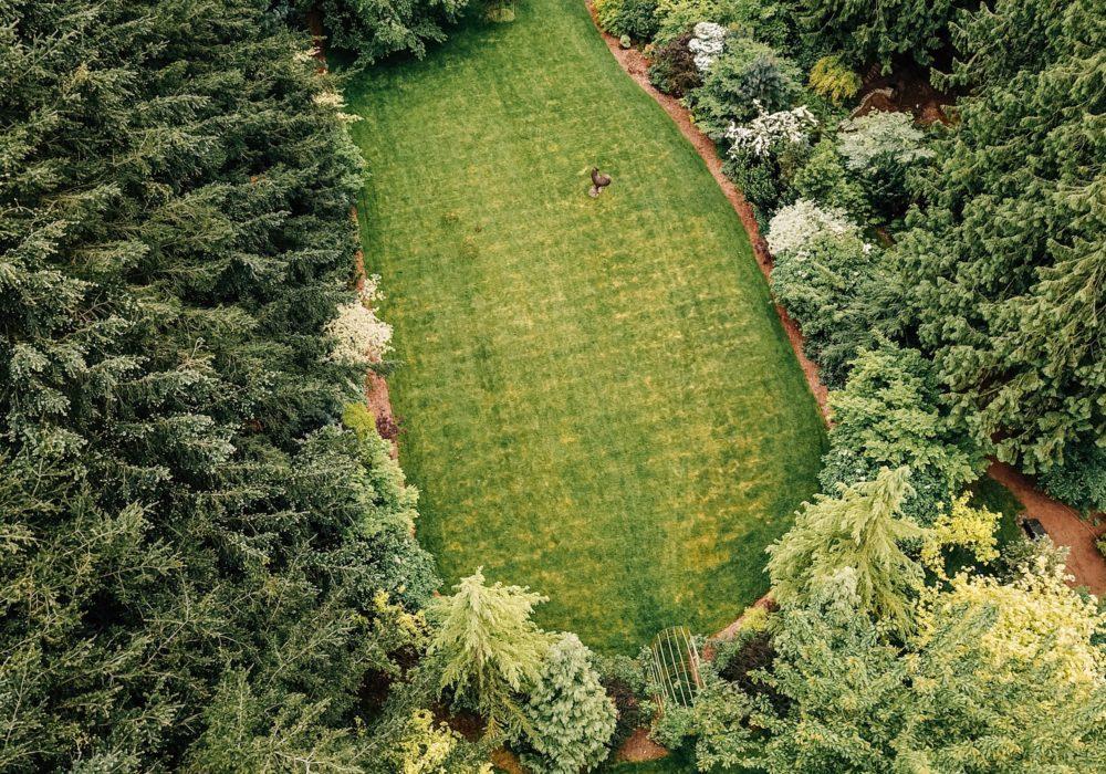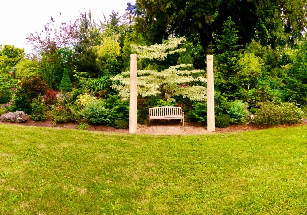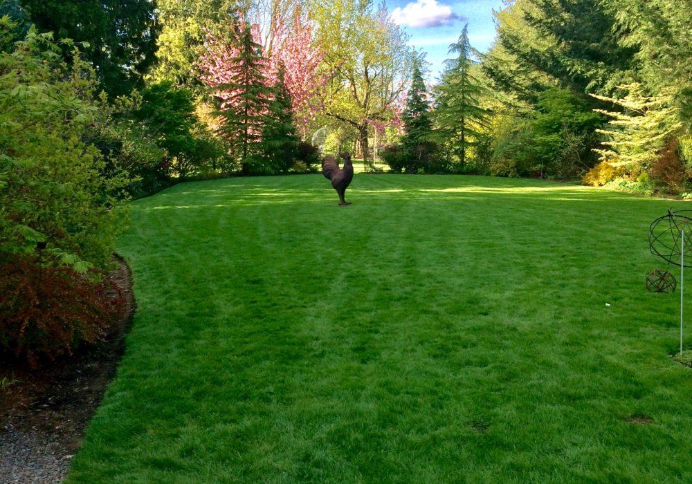 So named for it’s shape, the Horseshoe garden is another unique spot separated from the outside world by a wall of mature fir trees on one side and an ancient cedar on the other. The huge open lawn is bordered by a pleasant mixer of trees and flowering shrubs that bring both seasonal change and interest.