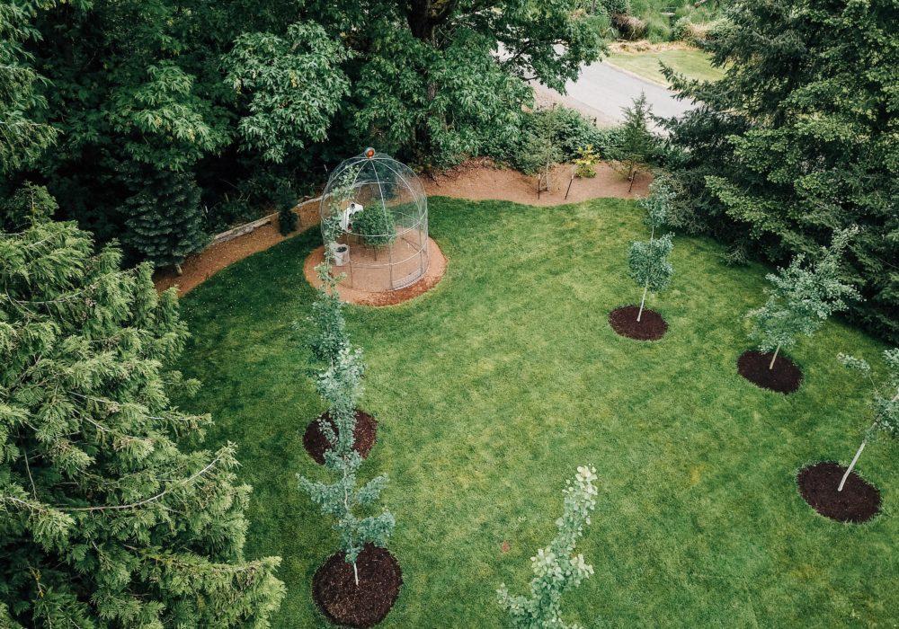 A grove of Quaking Aspens guards our twelve-foot-high bird cage. Surrounded by fir, cedar, and maple trees make this a picturesque spot for a ceremony or reception.