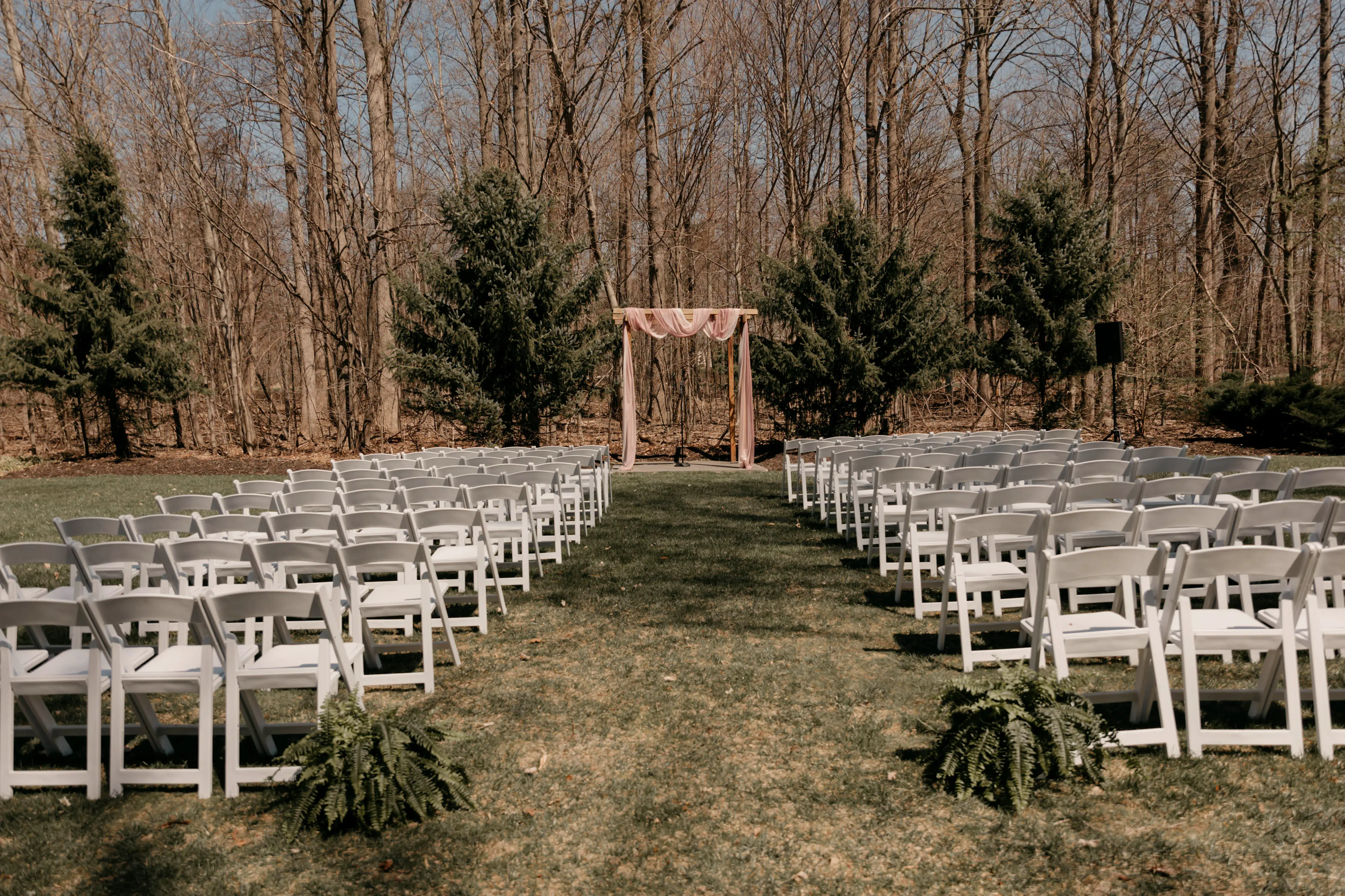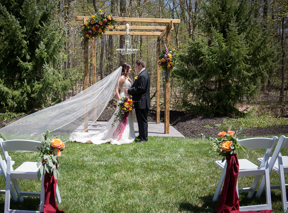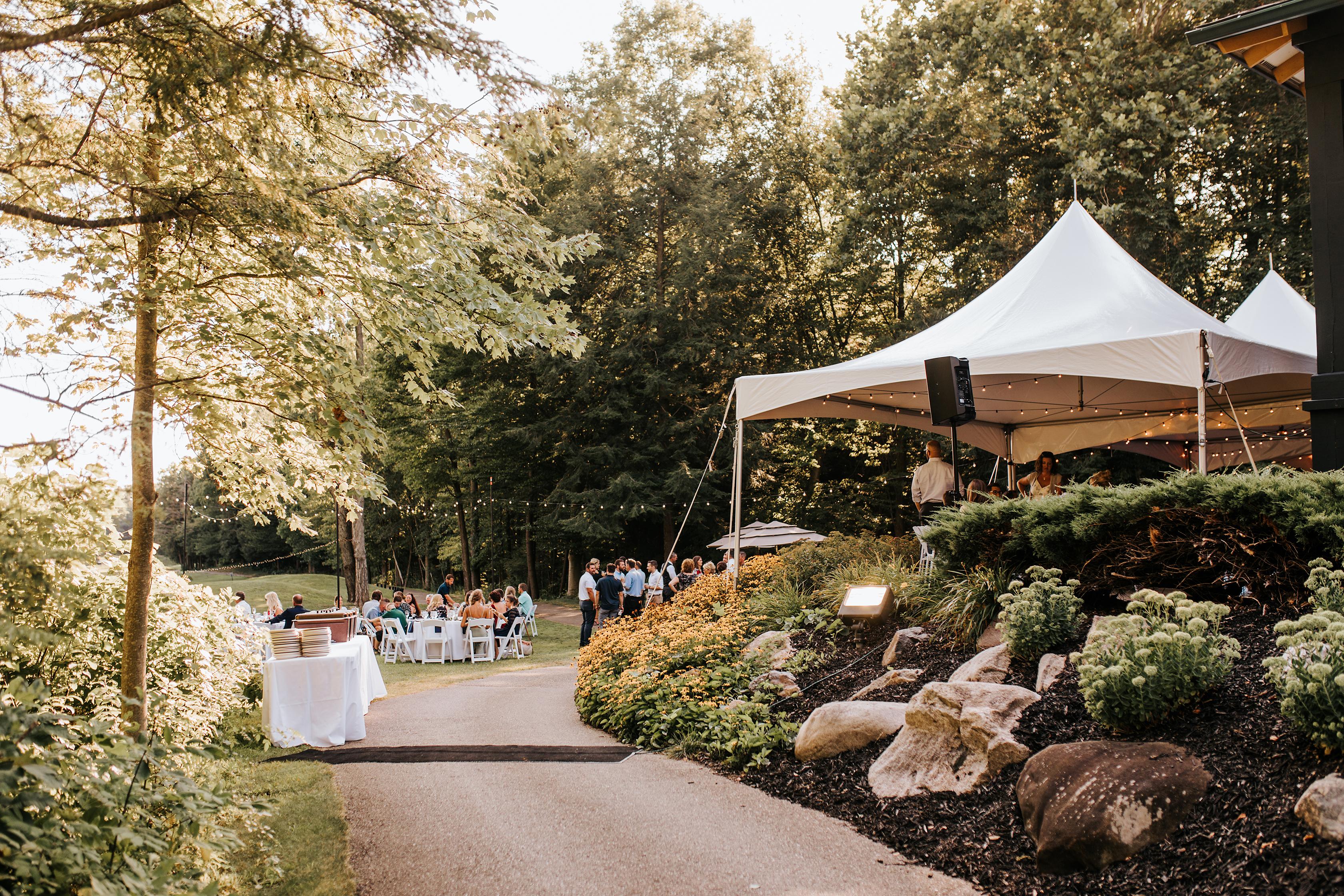Ravines' outdoor ceremony site is conveniently located across from the reception venue. The luscious lawn with cultivated flower beds, wooded surroundings of Michigan Pines and colorful Maple trees, and rustic wooden arbor create the the perfect ambiance and setting for your ceremony.