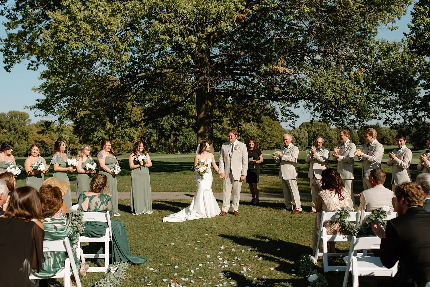 Our stunning venue in Indianapolis, IN, creates unforgettable memories for couples and their guests, whether you’re planning an intimate gathering or a grand celebration. Our window-lined ballroom, featuring a stately mahogany bar and customizable floor plans, seamlessly blends classic country club charm with modern sophistication. With space for up to 180 guests (depending on setup), our spacious ballroom offers the perfect backdrop for your reception. Capture breathtaking wedding portraits in our elegant Clubhouse or amidst the picturesque beauty of our lush grounds. From the refined ambiance to our exceptional service, every detail is thoughtfully designed to make your day truly special. Our dedicated team will tailor every aspect of your wedding to reflect your unique style, vision, and budget—ensuring an experience as seamless as it is unforgettable.
