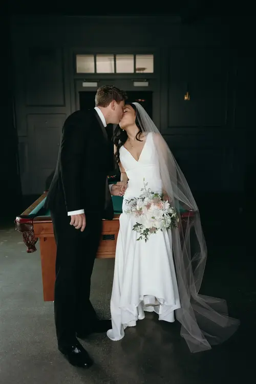 The venue includes a glamorous and feminine bridal suite and a robust and energetic groom’s suite (one features a dark, rich color palette with seating and a pool table), providing comfort, style, and space to relax and prepare for your day.