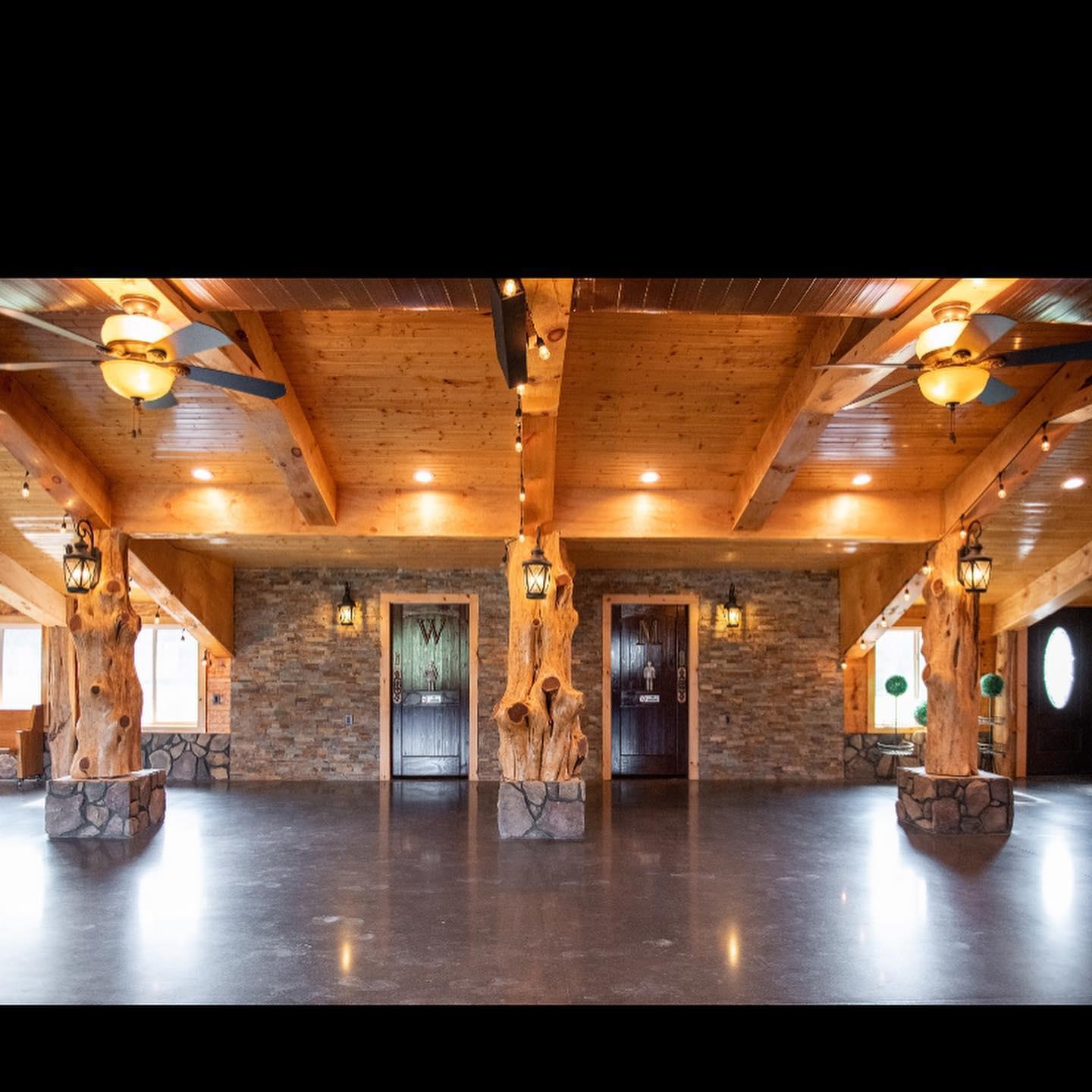 The Crawford Farm is a beautiful event venue in Statesville, NC hosting weddings, receptions, reunions, parties, team building activities, and more. The Crawford Farm is in a country setting and unlike any space in Statesville! 10,000sf of indoor climate-controlled space with a comfortable mountain lodge feel. Elegant lighting, majestic cedar trees, 3 exquisite rock fireplaces, tongue, and grooved wood ceilings, beautifully done concrete tables, and floors make up this wonderful relaxed atmosphere.