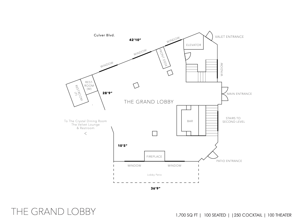 The Studio is adjacent to the Parisian Room and shares its same bright and elegant décor. Added space appropriately overlooks the Historic Culver Studios and is perfect for smaller gatherings and meetings. This quaint corner room is able to connect to the Parisian Room for a shared function and offers the same audio/visual capabilities.