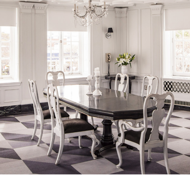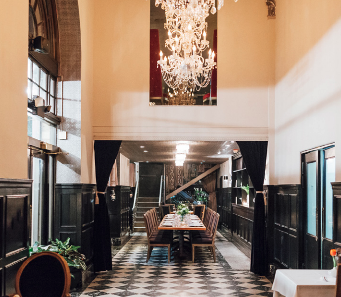 Located just past our Grand Lobby, this elegant space makes for an impressive background for sit down dinners and cocktail parties alike. High ceilings at the entrance lined with crystal chandeliers play a dramatic counterpoint to the more intimate and private space in the rear. An original black and white checkerboard marble floor is juxtaposed with a reclaimed wood communal farm table, perfectly in keeping with the hotel’s signature contemporary-meets-classic décor. Take advantage of the Dining Room’s private entrance and incorporate part of our outdoor patio area into your event for those guests who like to get some fresh air.
