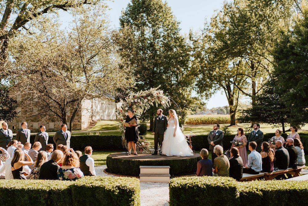 We offer a 360-Degree boxwood ceremony garden that you won't find anywhere else. You will say your vows on a raised alter, your family and friends will circle around you, seated on our handmade handmade wooden benches.