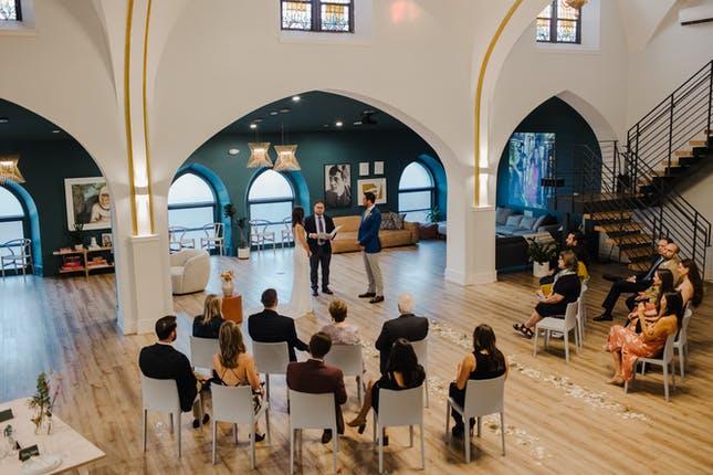 Host an intimate wedding, a family gathering, a holiday party and much more in a breathtaking space full of rich history. Vaulted ceilings and arched windows set the backdrop, while modern touches and design nods inspired by Bauhaus, and the art and humor of John Baldessari, make The Deacon a contemporary curated space.