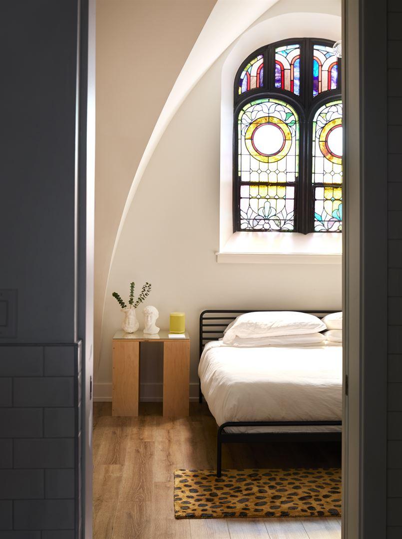 Eight Bedrooms made for unwinding, exploring, and creating memorable experiences. Each room features luxury bedding and mattresses by Wright, unique layouts, original stained glass windows, Sonos speakers, Wifi and many thoughtfully chosen details.